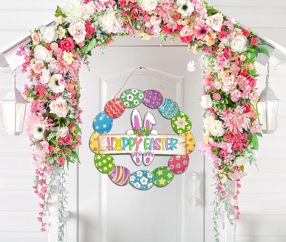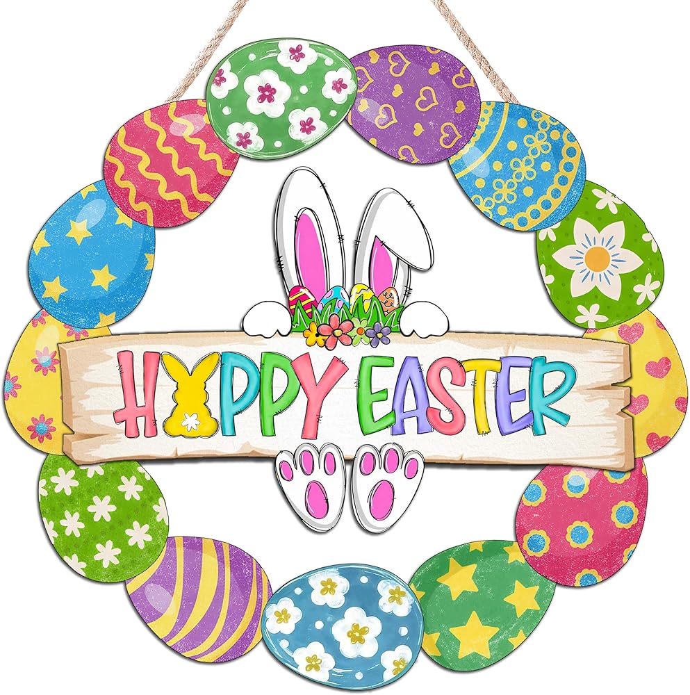 Easter Decorations: The size of easter wreath is approx 12 x 12 inches, it's suitable for indoor and outdoor decoration use. Easy to hang on the wall or doorway.