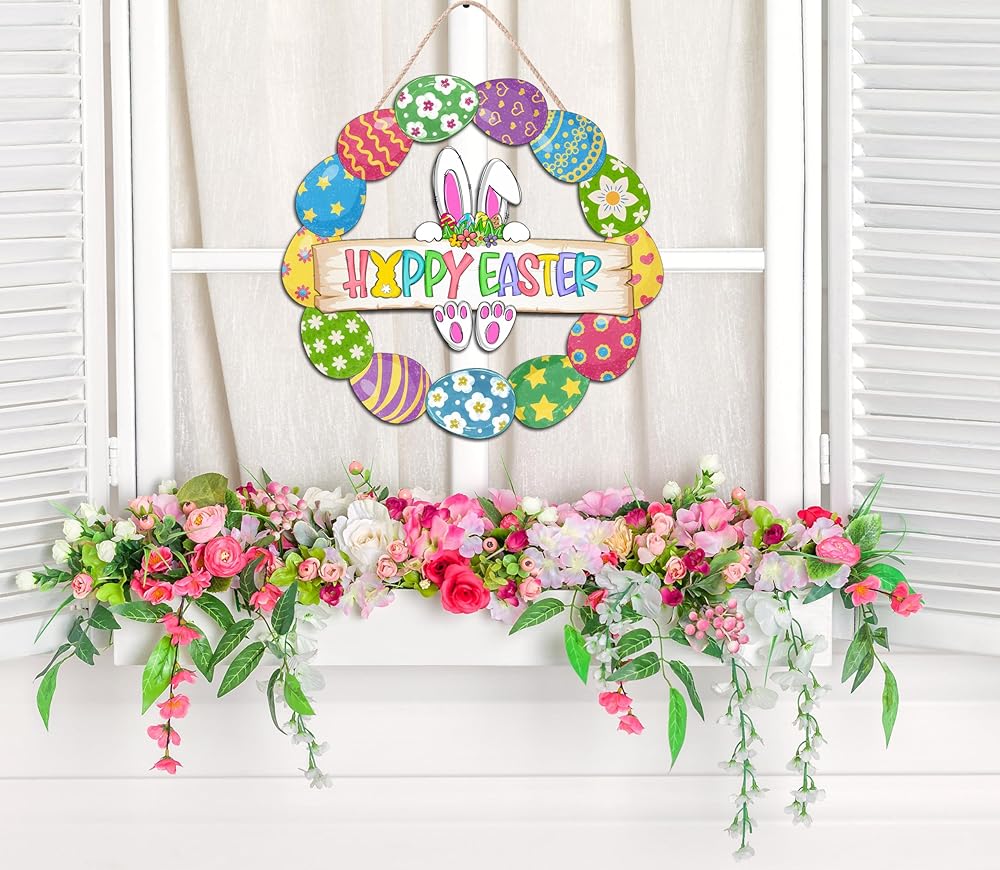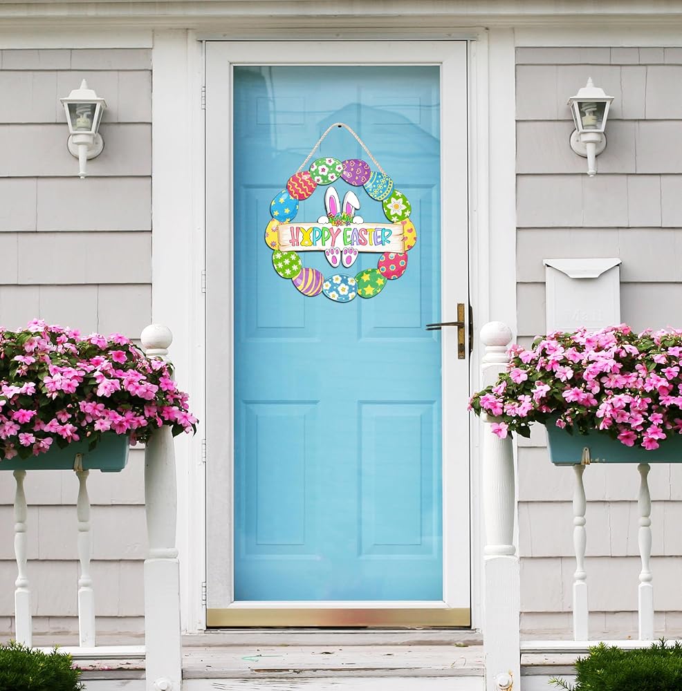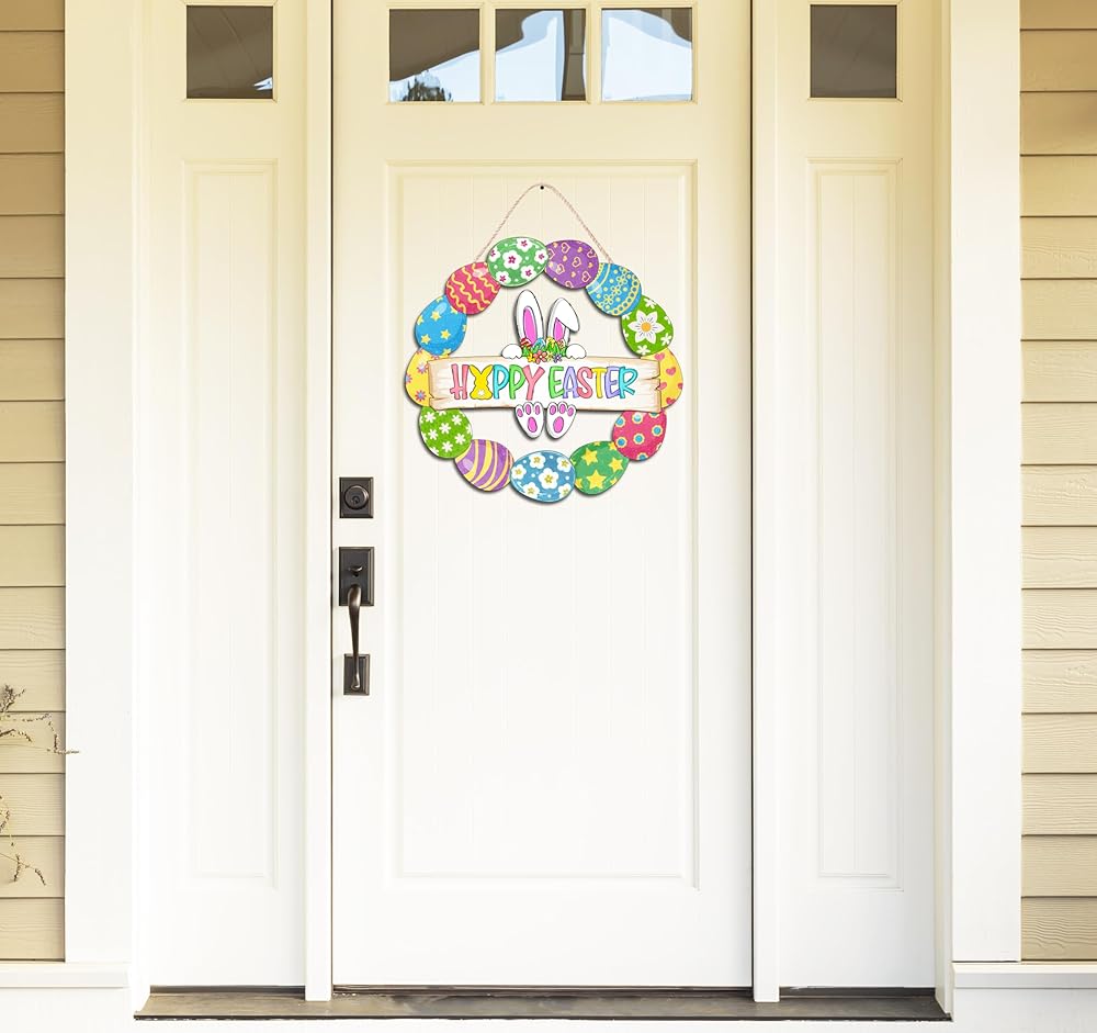 Easter Door Wreath Design: The theme of the Easter door hanger is Easter eggs and cute bunny, which brings interesting atmosphere to Easter Day. Our Easter decorations door hanger are lightweight and durable, making them great party supplies for farmhouse home decorations. It's also the great addition to Easter party supplies and outdoor spring gatherings.