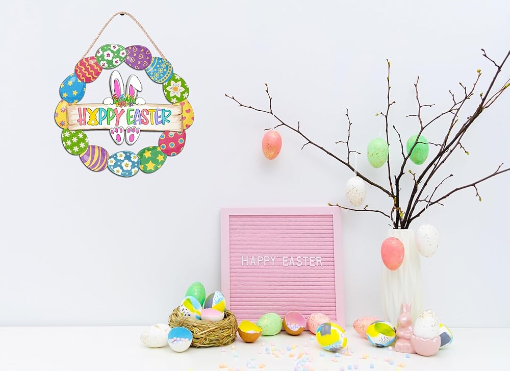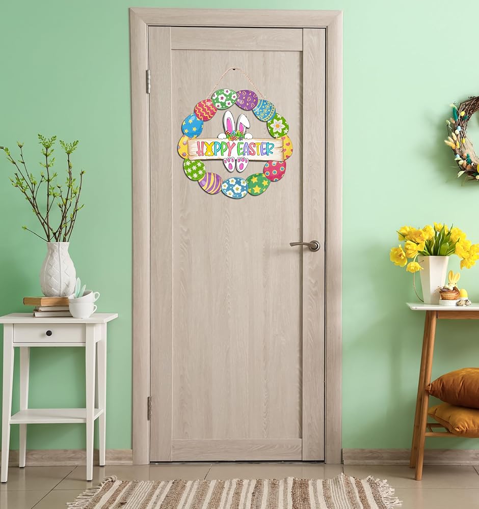 Easter Door Sign: The Easter door sign hanging(The rope is included) on the outside give your home a Easter Day touch,and the eye catching door sign will attract and surprise your guests.This hanging sign will add more festival atmosphere to your party!