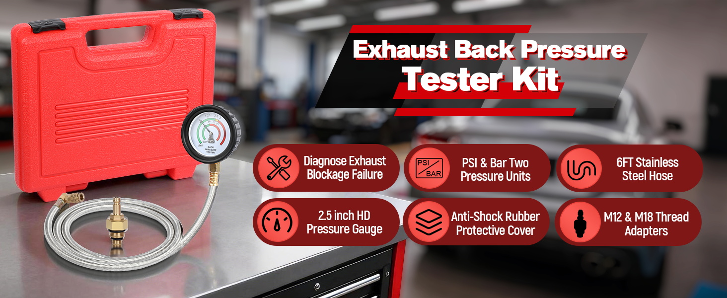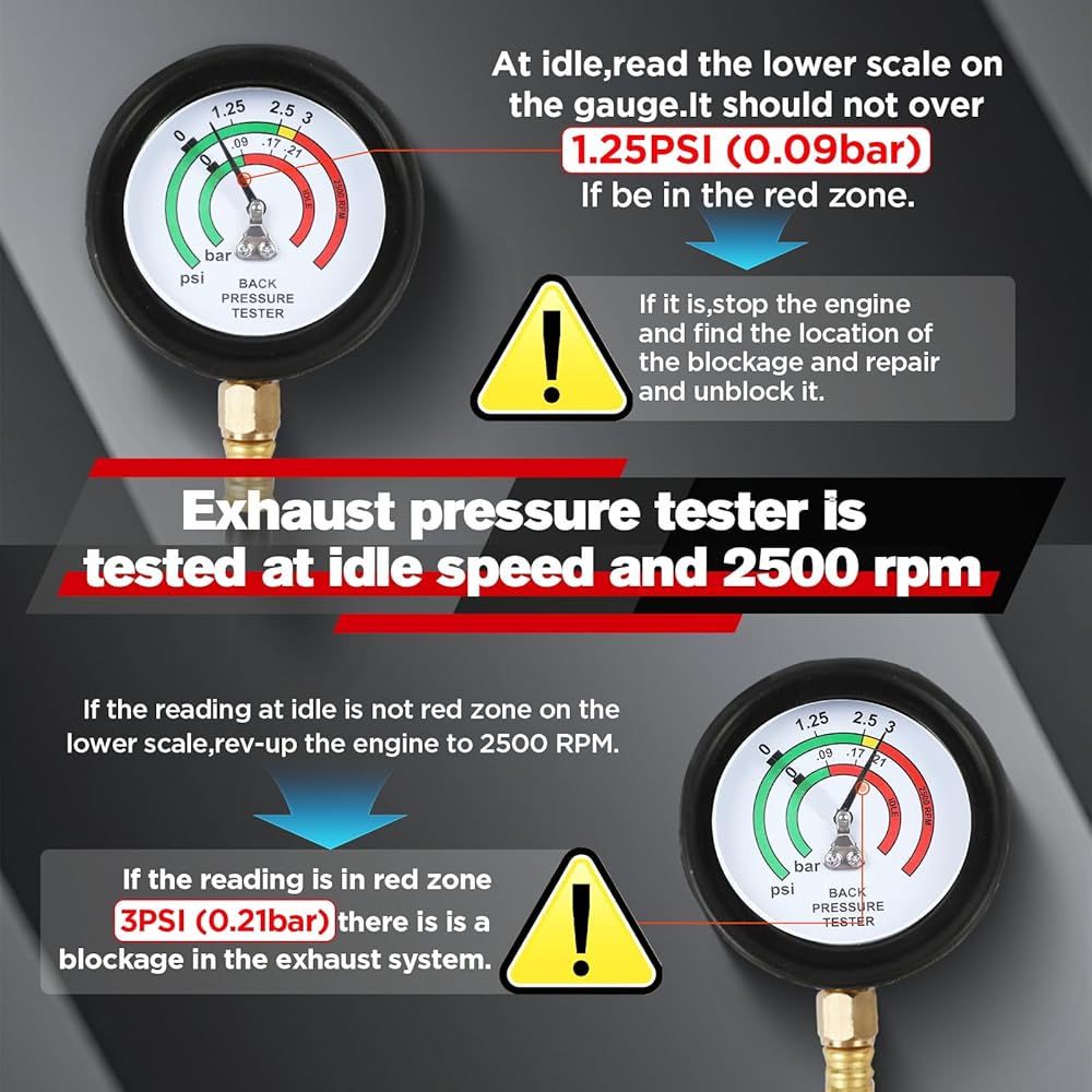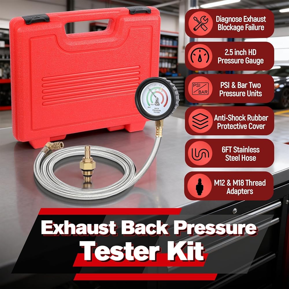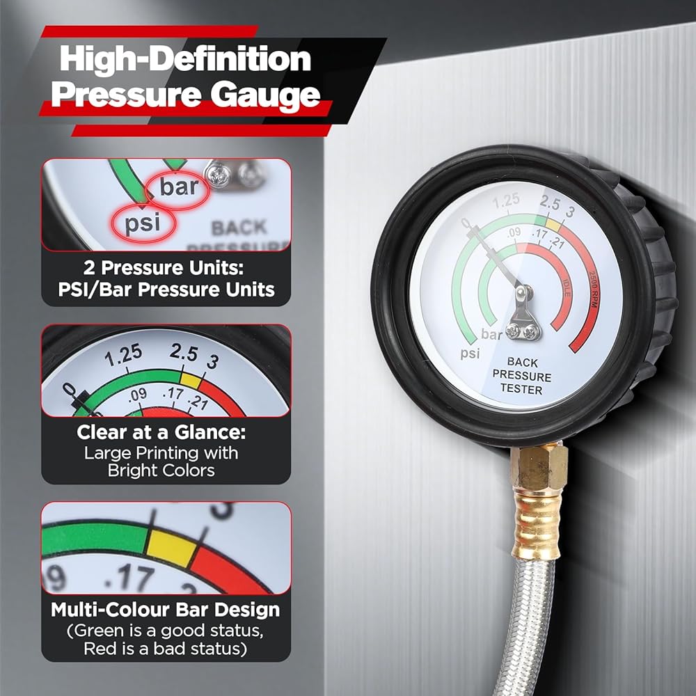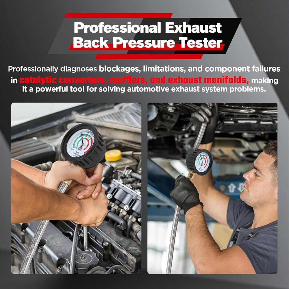 • 【جهاز اختبار ضغط خلفي احترافي مع حقيبة حمل】تم تصميم جهاز اختبار الضغط الخلفي لتشخيص مشاكل ضغط العادم الخلفي. إنه سهل التشغيل: ما عليك سوى توصيله بالعادم وتشغيل المحرك في وضع الخمول أو 2500 دورة في الدقيقة، ثم قراءة مقياس الضغط. يساعدك بسهولة على تشخيص ما إذا كان المحول أو كاتم الصوت الخاص بك مسدودًا، مما يمنع الضغط الخلفي الذي يؤدي إلى انخفاض طاقة السيارة. تأتي مع حقيبة حمل محمولة قوية ومتينة لسهولة التخزين والنقل.