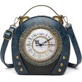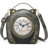 Antique Clock Bag This bag compliments an alternative fashionable outfit. Wear this bag in your hand for night-time or attach the adjustable cross-body strap to wear in the daytime. This special and unique clock bag design will make you stand out from the crowd. The metallic PU leather gives off the feel of a real metal clock. Add batteries and watch the cloth work. Is a clock bag the new watch? This bag is extremely spacious, with the zipped back pocket as well as the main bag space. L x W x H ? 20cm x 9cm x 19cm Batteries not included