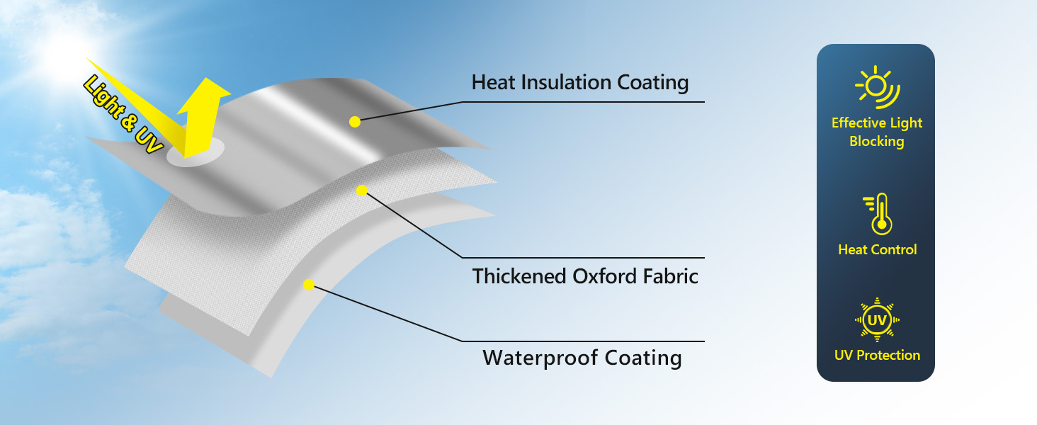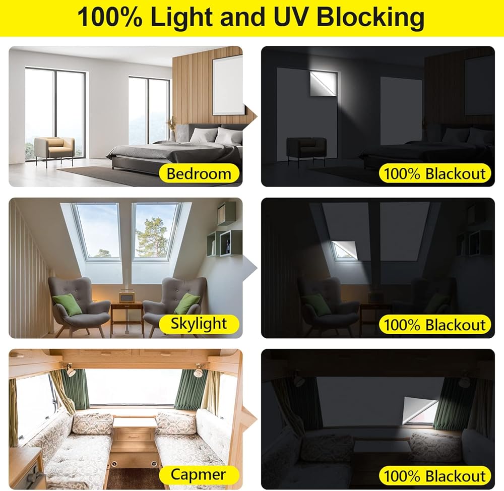 تعتيم كامل: سواء كنت تعمل في نوبات ليلية أو لديك أطفال ينامون أثناء النهار، فإن غطاء النافذة المعتم بنسبة 100% من FADOTY يخلق بيئة مظلمة مثالية عن طريق حجب أشعة الشمس والأشعة فوق البنفسجية تمامًا، مما يساعدك على النوم بشكل أفضل والبقاء هادئًا