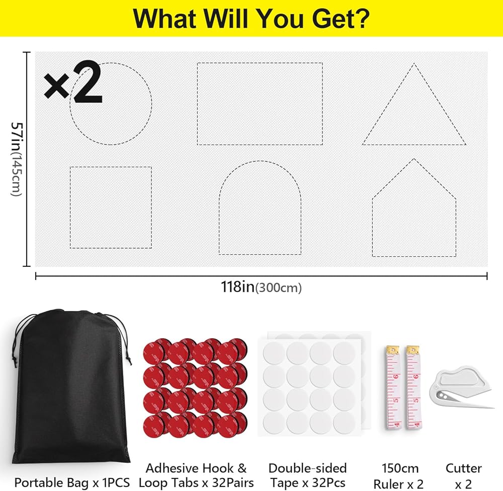 حجم قابل للتخصيص: ستائر معتمة للسفر مقاس 118 بوصة × 57 بوصة سهلة القطع وملائمة لأي شكل أو حجم نافذة، ومناسبة لغرفة النوم، وغرفة الأطفال، والمكتب، وRV، واستوديو الصور. للحصول على أفضل النتائج، قم بقطع غطاء التعتيم بشكل كبير قليلاً لتقليل تسرب الضوء