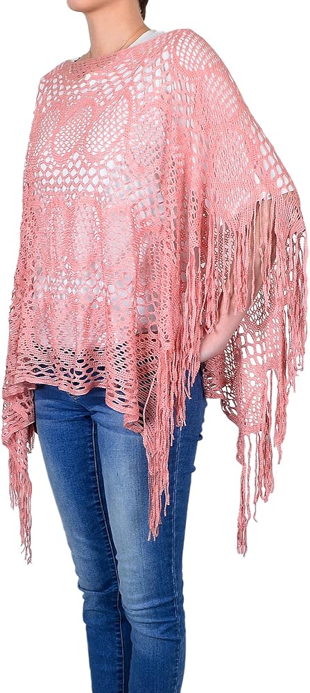 معطف نسائي كاجوال من الدانتيل الشبكي من الكروشيه من White Deer ذو هامش طويل (سمك السلمون)