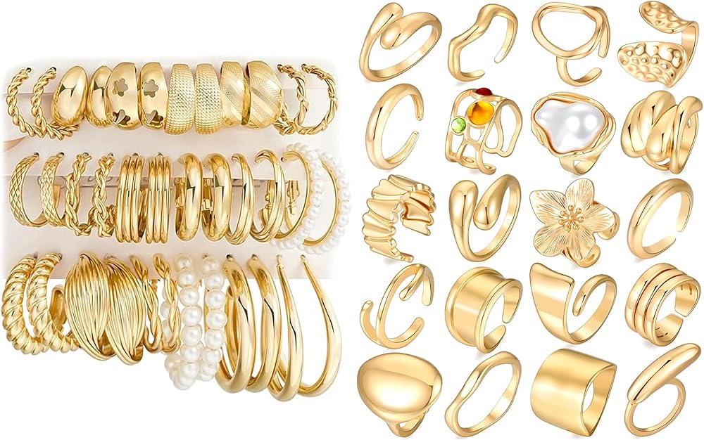 Gold Hoop EarringsSet: The earrings set comes with 18 pairs of gold hoop earrings, which is Rich in styles and sizes. such as chunky hoop earrings, pearl earrings, twisted Earrings etc. The unique design will makes you more elegant and charming, and it is the great ideal choice for various occasions and wearing needs!