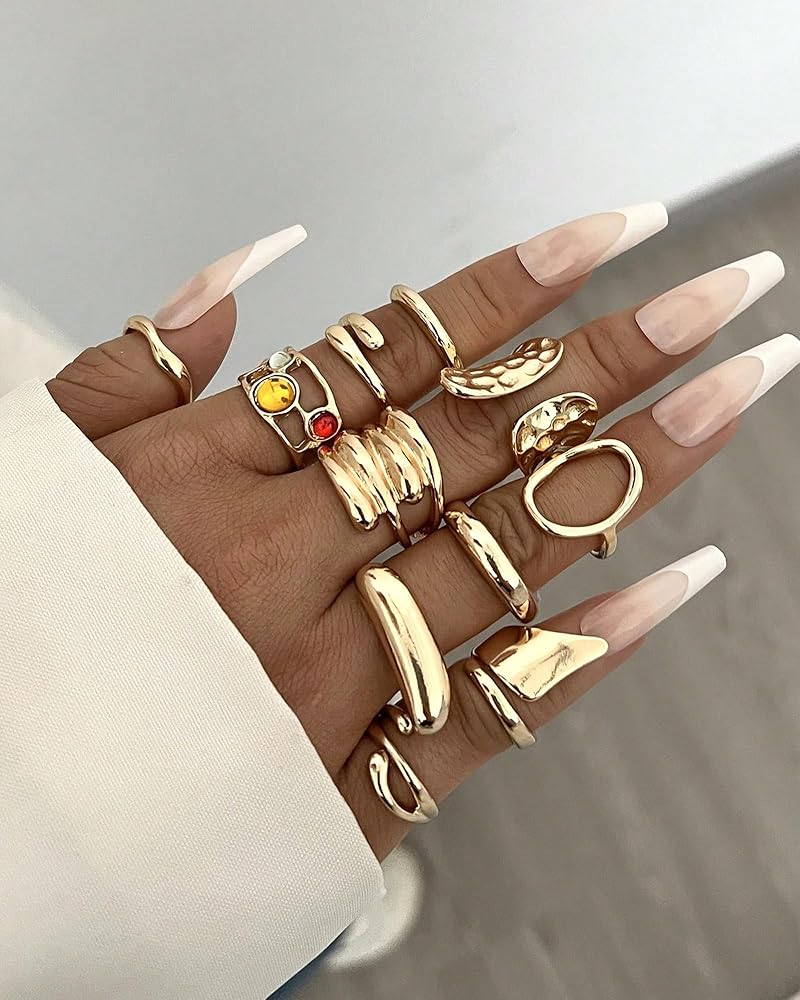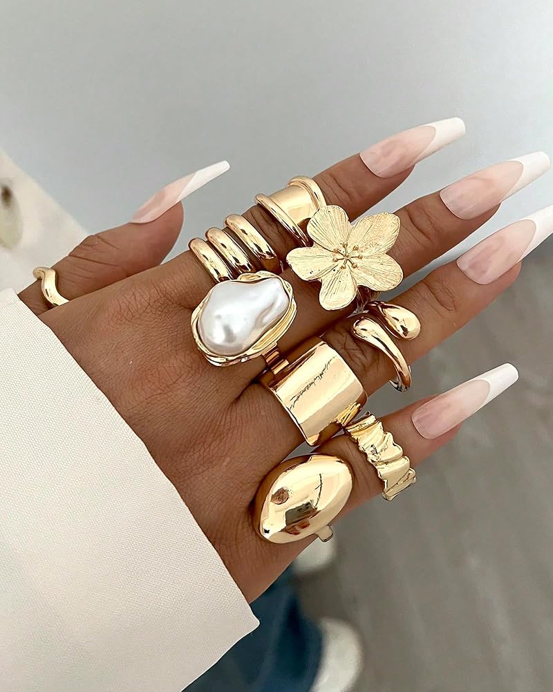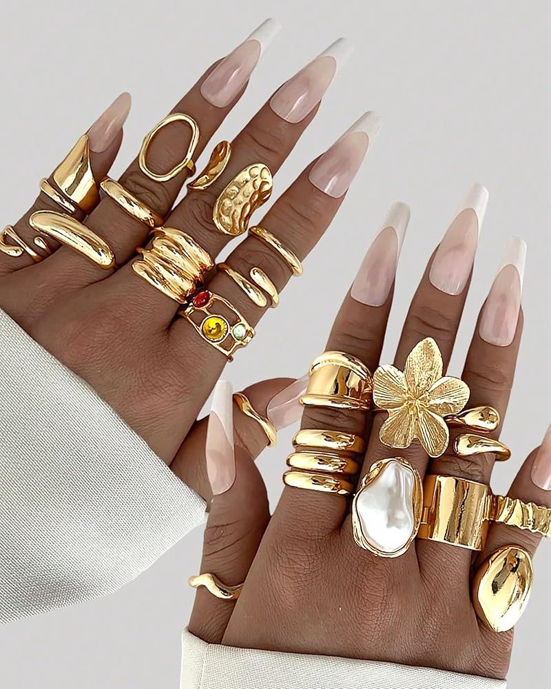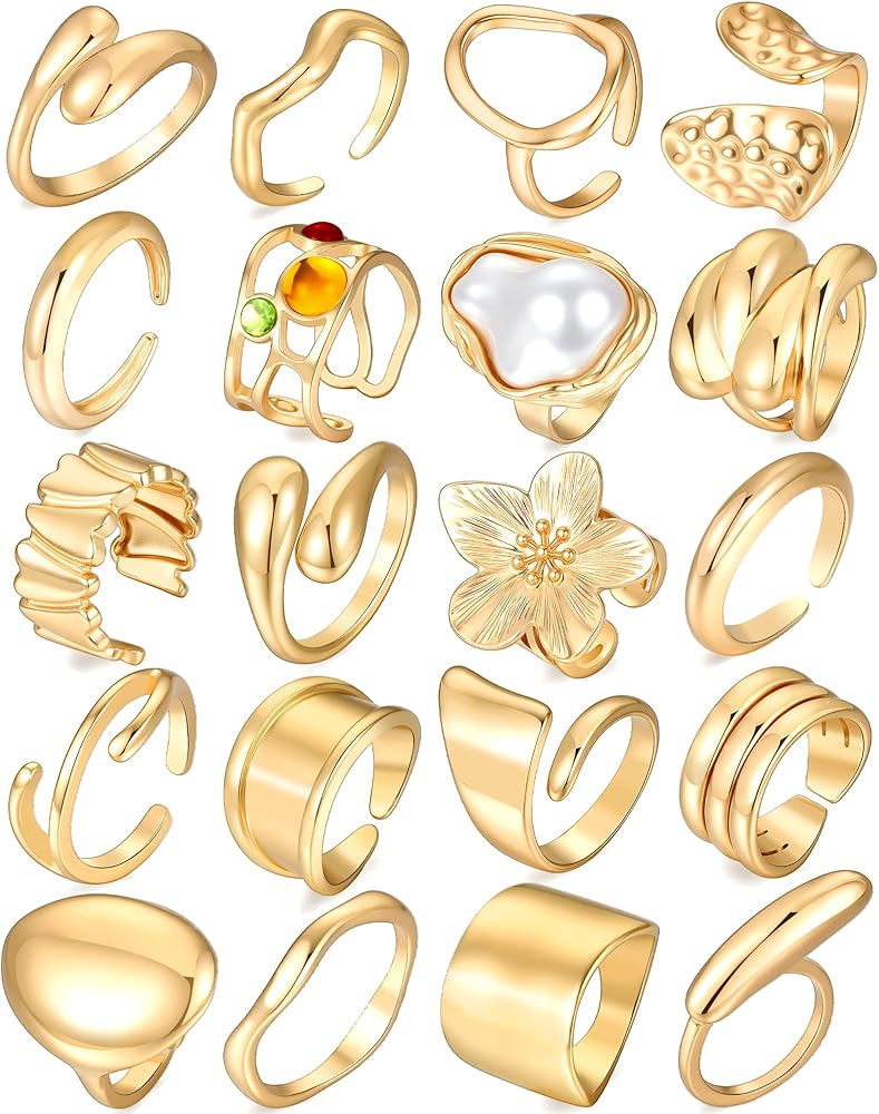 20 Pcs Vintage Rings Set:You will get 20 pcs fashion Gold Chunky Rings in a suit. Those rings come in many different styles such as crystal rings,gem rings,flower ring,boho rings and more. Rings for women are suitable for all occasions and fulfill all your dressing needs.