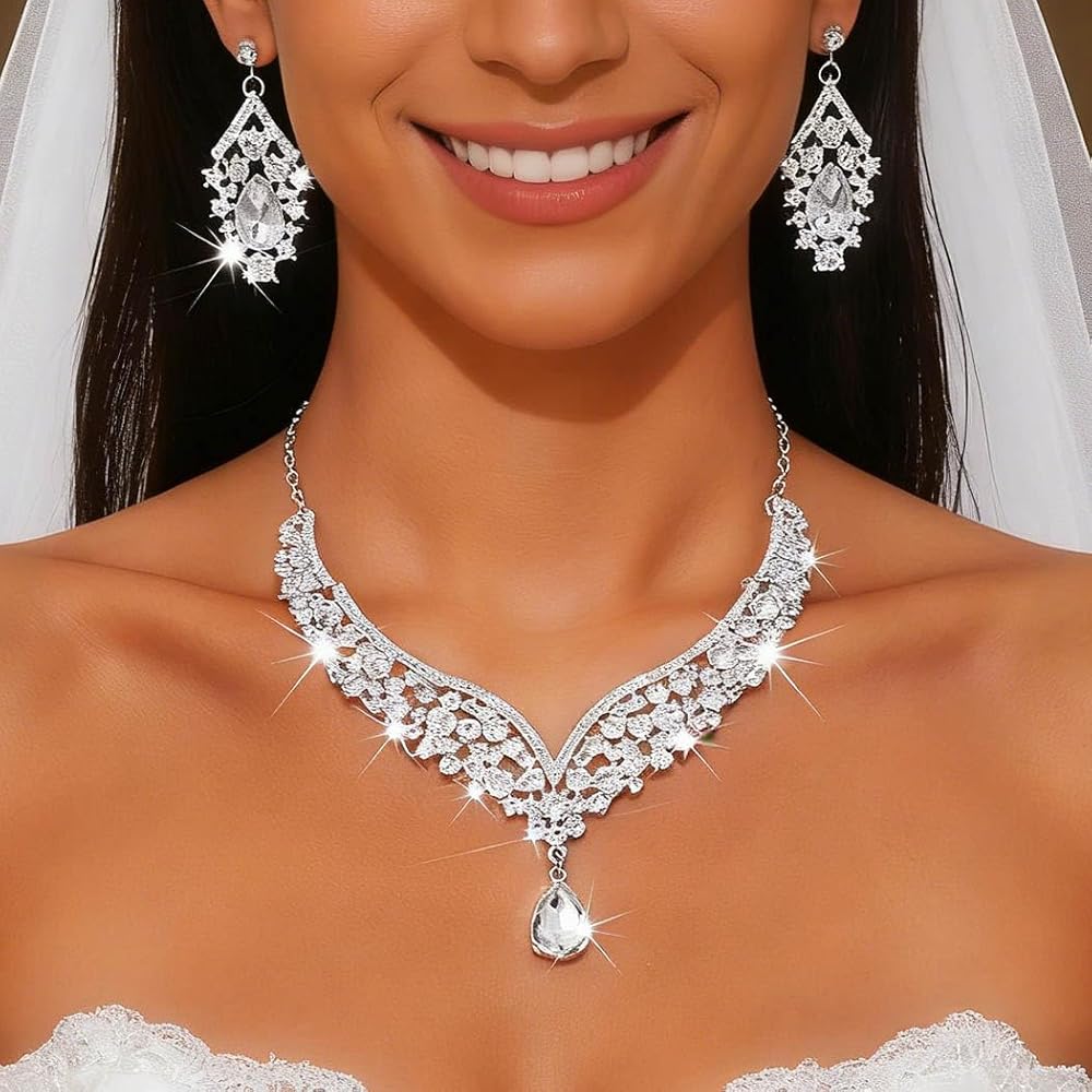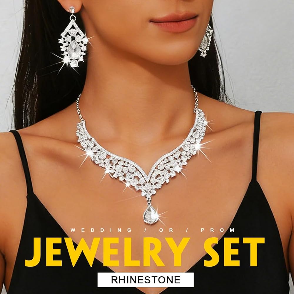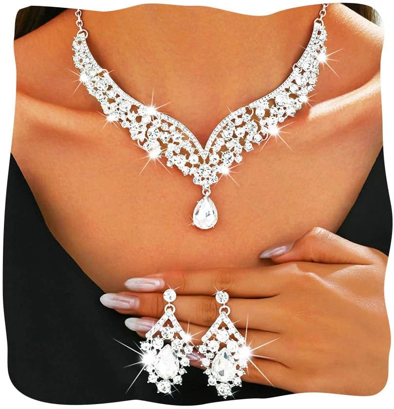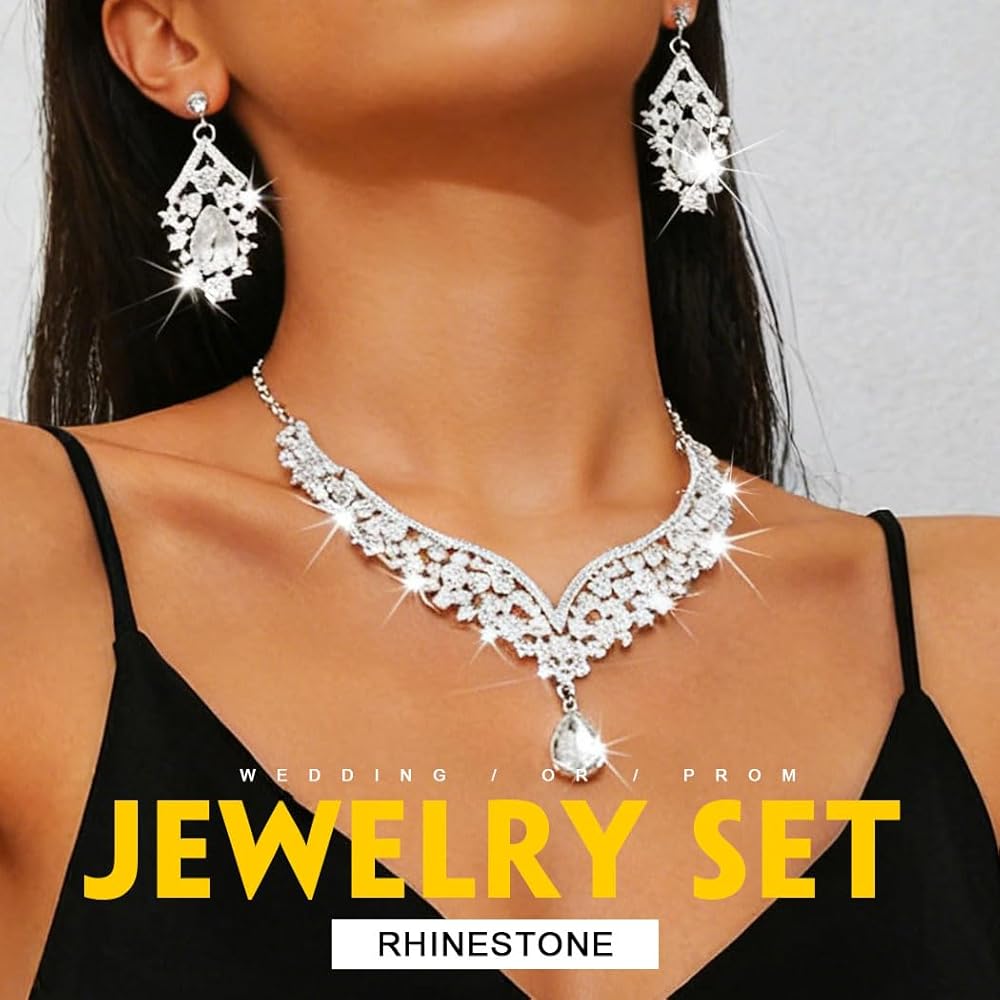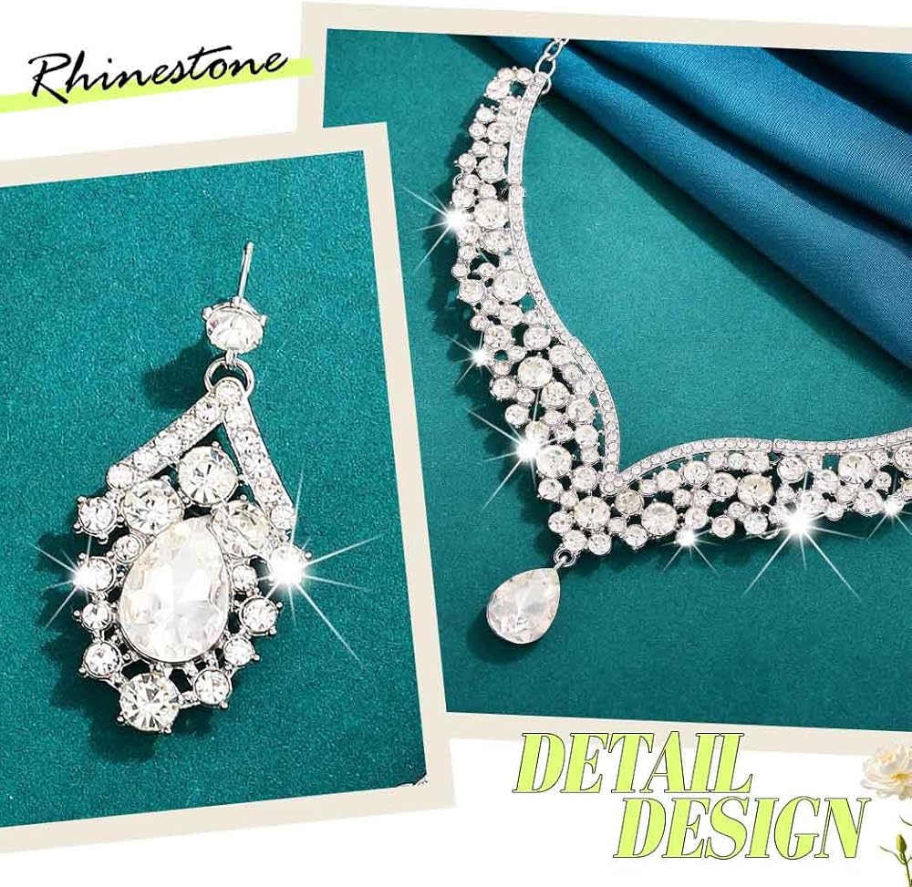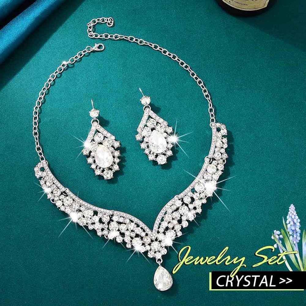 مجموعة مجوهرات العروس من حجر الراين مصنوعة من الزجاج والسبائك