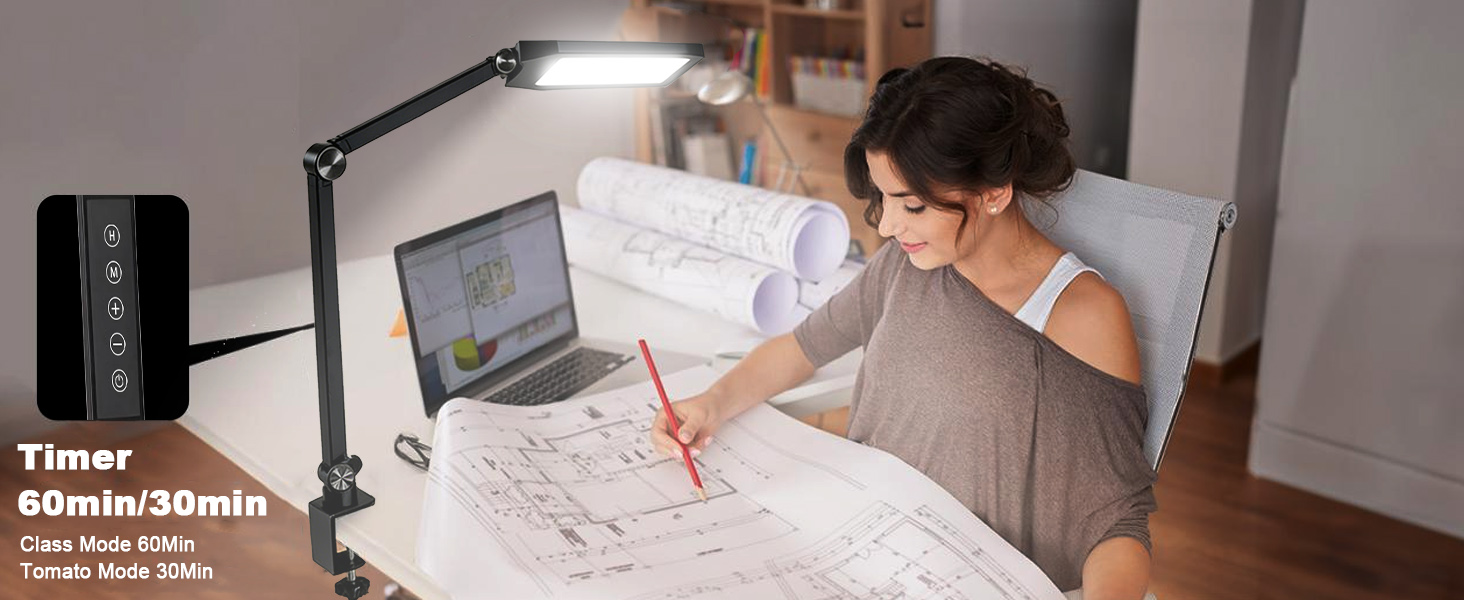 مصباح مكتب LED NS مع مشبك، ضوء طاولة خافت للضوء خالٍ من الوميض مع 3 أوضاع ألوان، وظيفة الذاكرة والمؤقت، مصباح بمشبك ذراع متأرجح قابل للتعديل للمكتب المنزلي والقراءة والدراسة. البطاريات غير متضمنة.