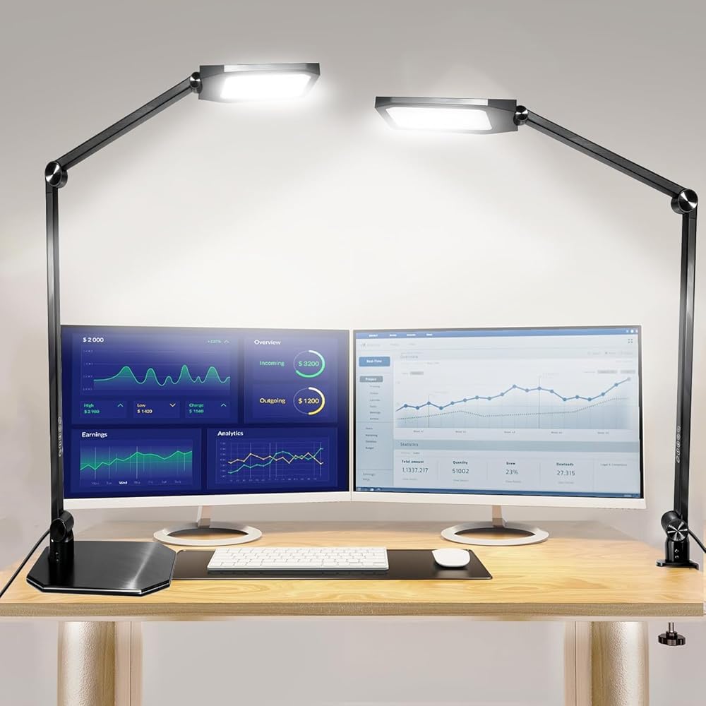 【إضاءة قابلة للتخصيص بالكامل】3 درجات حرارة ألوان (3000K/4000K/6000K) + تعتيم بدون خطوات (10%-100%). وظيفة الذاكرة تحفظ الإعداد المفضل لديك. مؤقت مدمج مدته 60 دقيقة يعزز فترات الراحة الصحية في العمل.