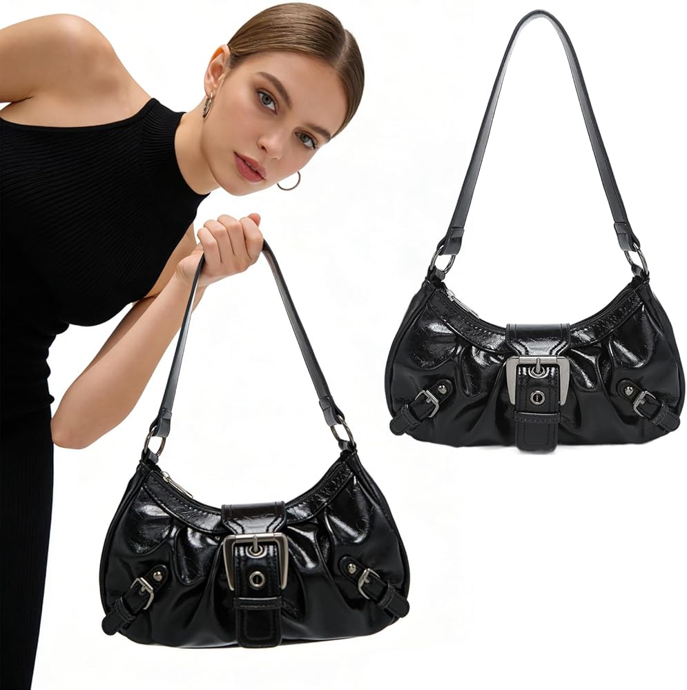 محافظ Y2k للنساء، حقيبة يد كلاسيكية بإبزيم Goth Punk Y2k، مجموعة مجوهرات ومشابك شعر، حقيبة كتف Emo للنساء