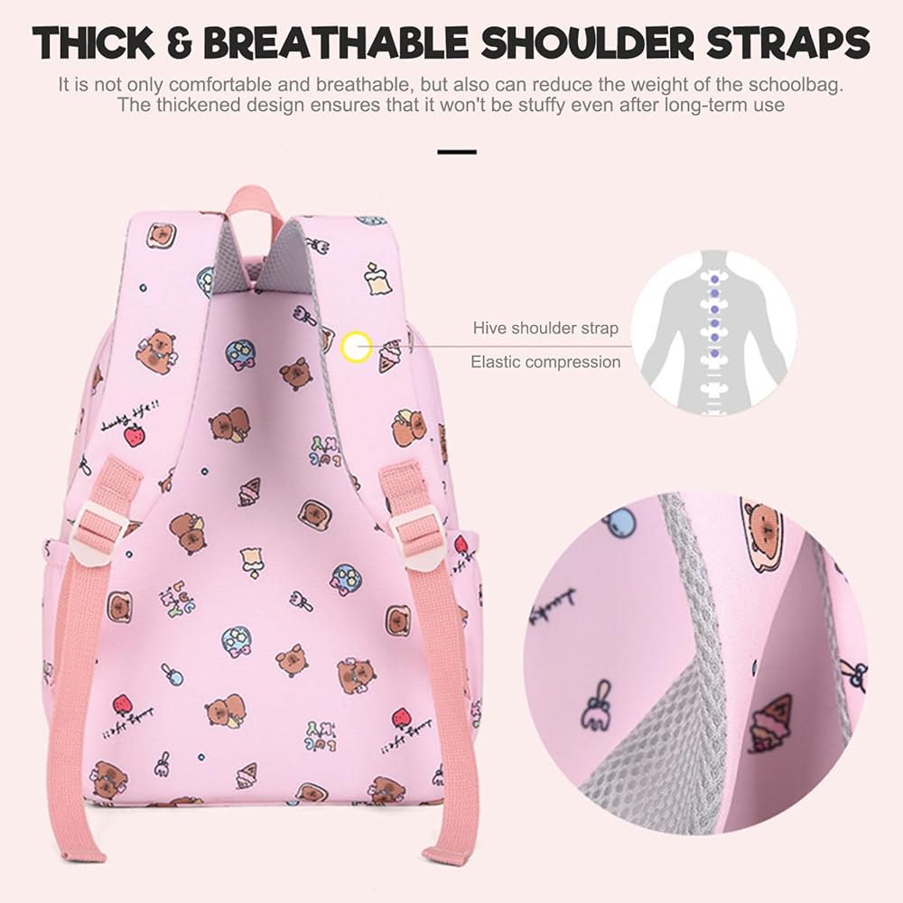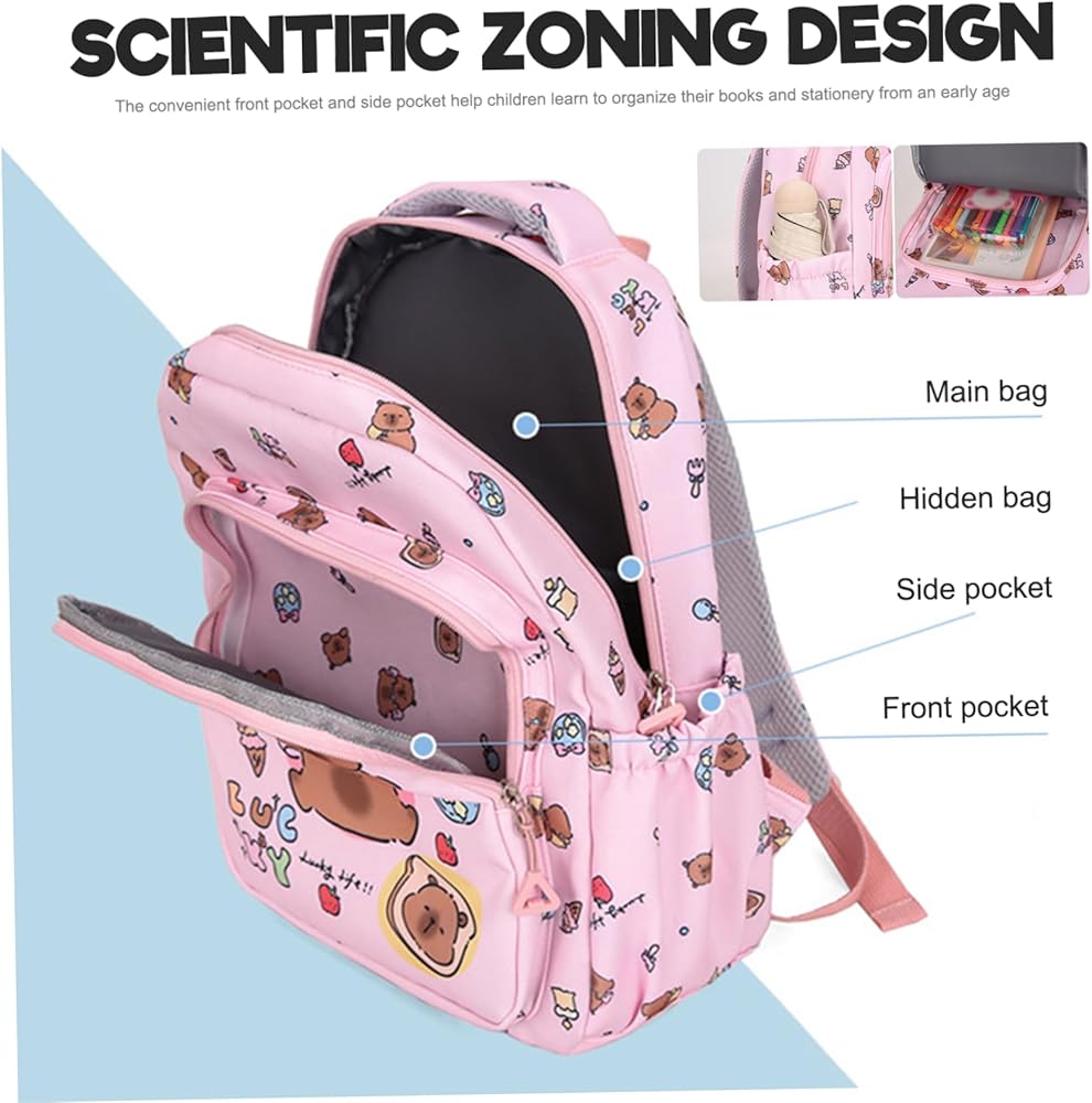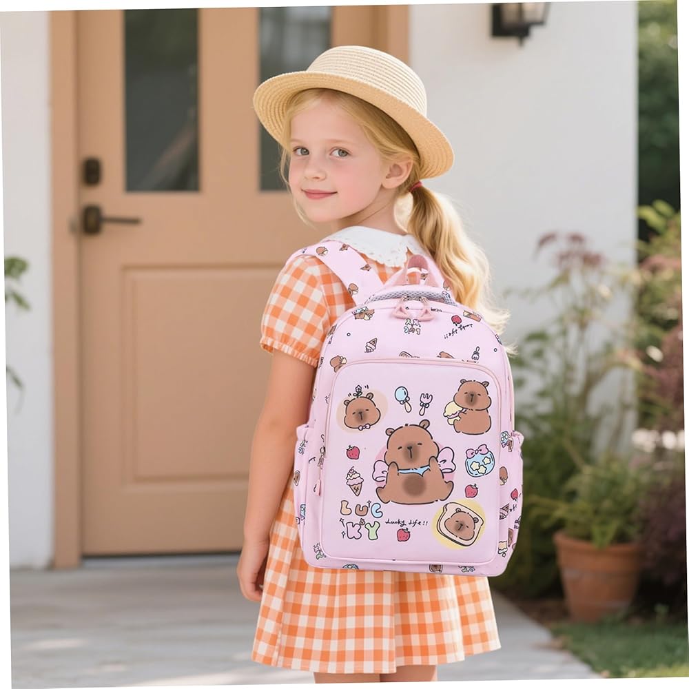 3Pcs/Set Capybara Backpack for Kids, Cute Kawaii Backpack Set with Lunch Bag and Pencil Case, Funny Going Out Cartoon Laptop Travel Bag combines adorable capybara-themed design with practical functionality for children; this kids backpack set includes a roomy backpack, insulated lunch bag, and matching pencil case, ideal for school and travel use; crafted with reliable, high-quality materials and featuring padded straps for comfort, it supports easy organization of school essentials and small laptops or tablets while reflecting a playful style perfect for young students; a perfect option for birthdays, back-to-school, or any special occasion, this kawaii capybara bag set brings fun and functionality to every outing and classroom day.