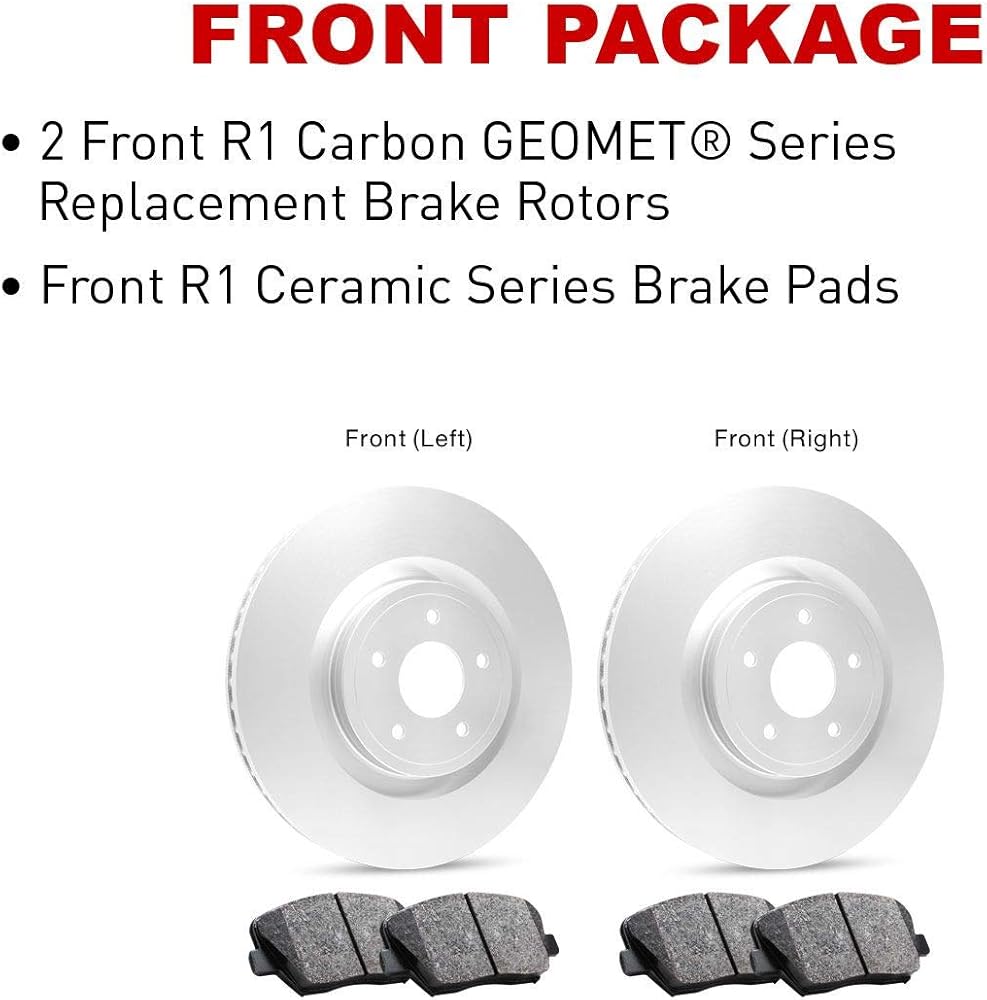 All-in-One Complete Front and Rear Brake Kit Replacement: R1 Concepts Carbon Series Front and Rear Brake Kit comes with (4) high performance brake rotors and (8) performance brake pads.