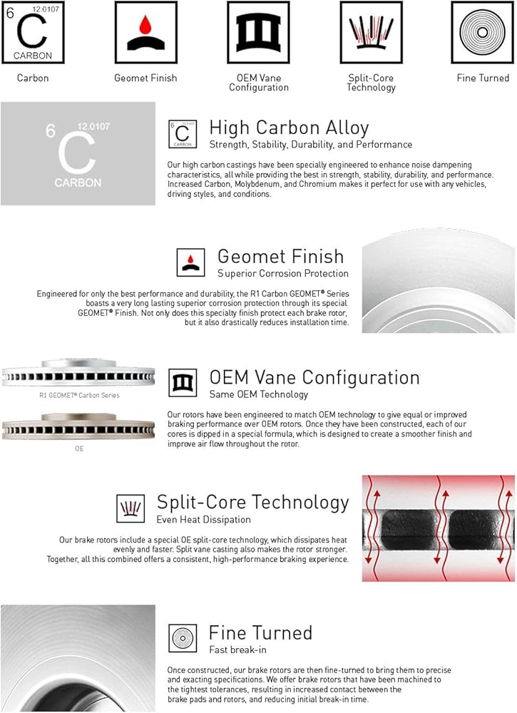 OEM Specifications: Formulated with G3000/G11H18 cast iron specification, these premium brake rotors are engineered to match OEM specifications for durability, reliability, and stability.