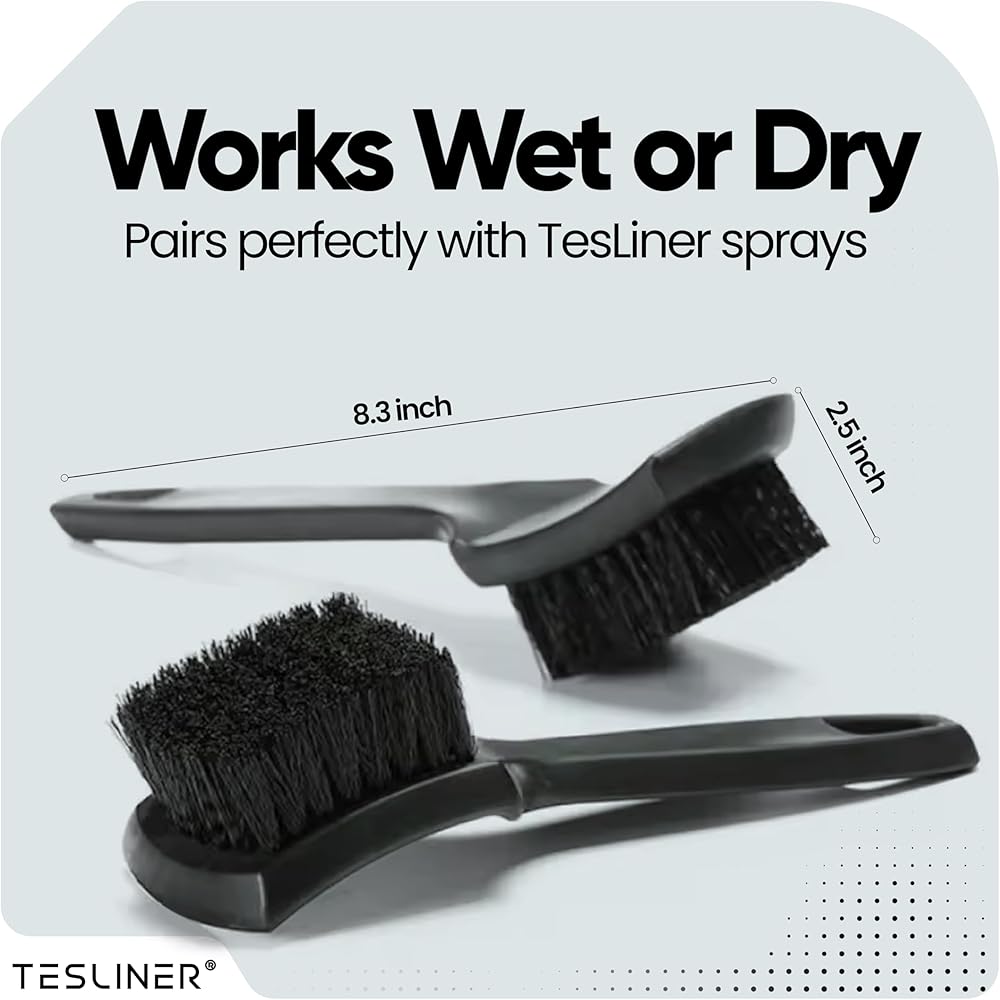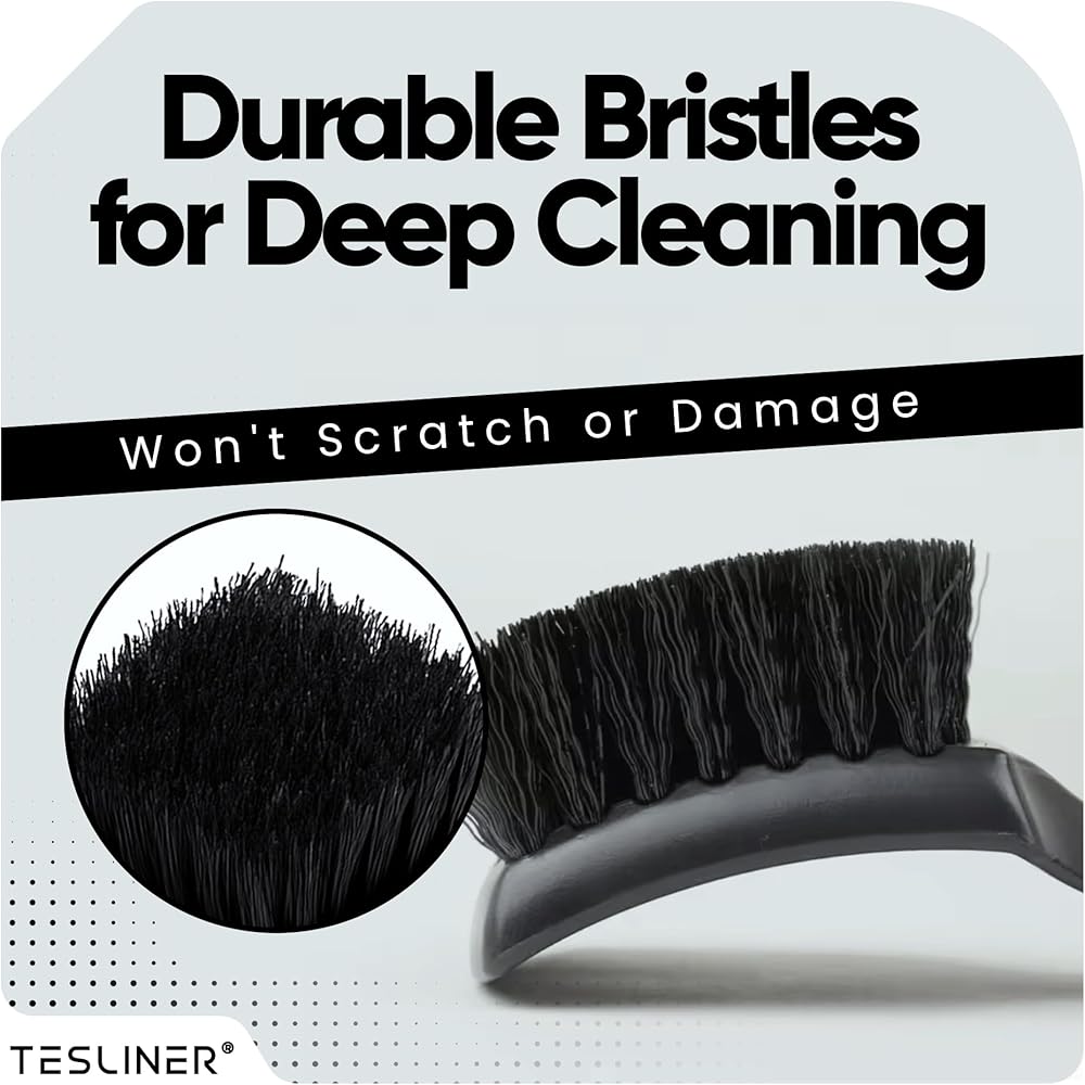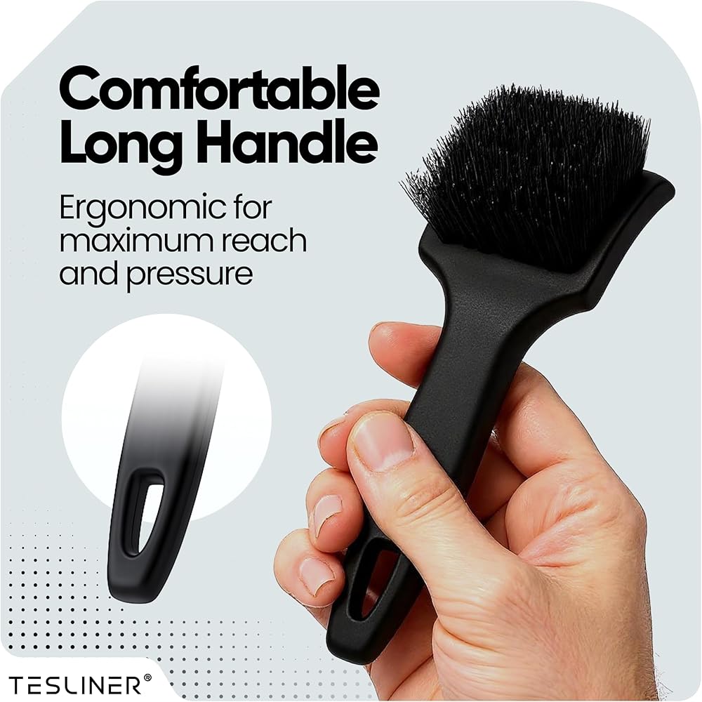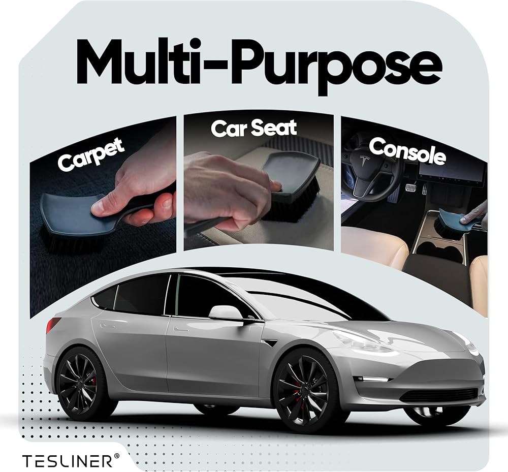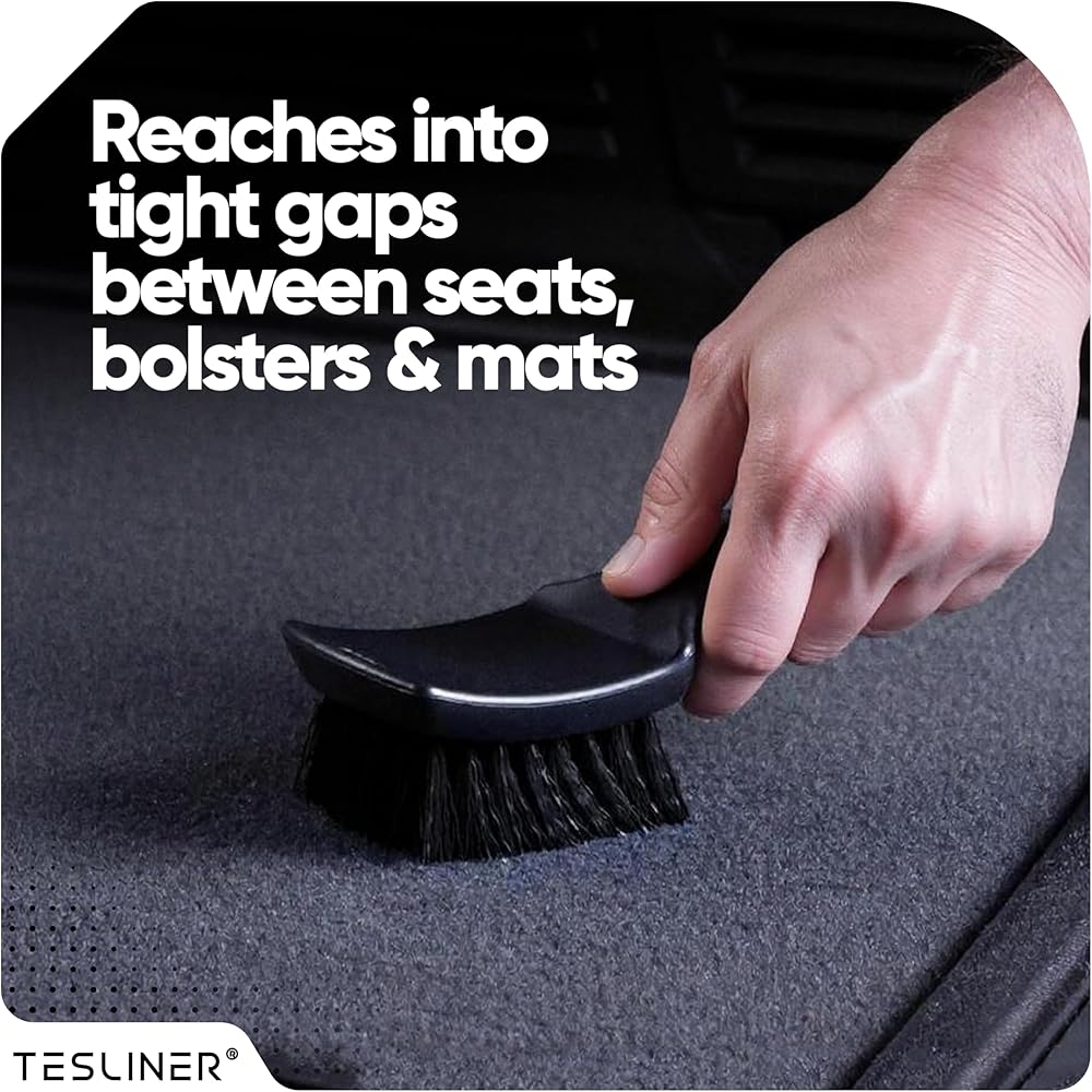 Keep your Tesla's interior spotless with our TesLiner Premium Detailing Brush, crafted specifically for Tesla owners who care about every detail. Our brush features precision bristles that reach deep into seat bolsters and stitching to lift out crumbs, dust, and debris—places vacuums can't touch. The soft yet firm bristles are safe on Tesla's premium vegan leather, providing a thorough clean without scratches. With our ergonomic, non-slip handle, you'll get maximum control and comfort whether you're doing a quick cleanup or a full interior detail. Built for convenience and performance, TesLiner's brush fits perfectly in your glovebox or console for easy access anytime. Keep your ride looking sharp and showroom-fresh—our brush is the ultimate solution for a cleaner, more refined cabin. TesLiner makes cleaning effortless so you can focus on the drive.
