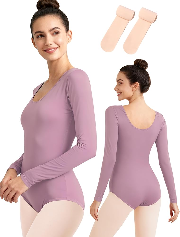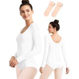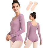 【تصميم مجموعة من قطعتين】تتكون ملابس الباليه الخاصة بنا من قطعتين، وتتضمن ثوب رقص بأكمام طويلة وجوارب واحدة. تتميز ملابس الرقص بتصميم منفصل، يمكنك شراء العناصر التي تحتاجها في وقت واحد.