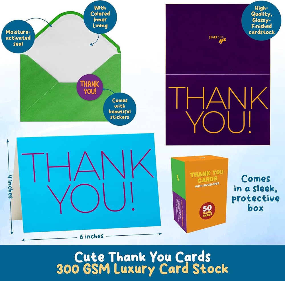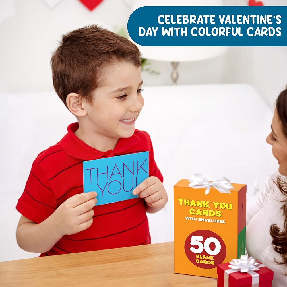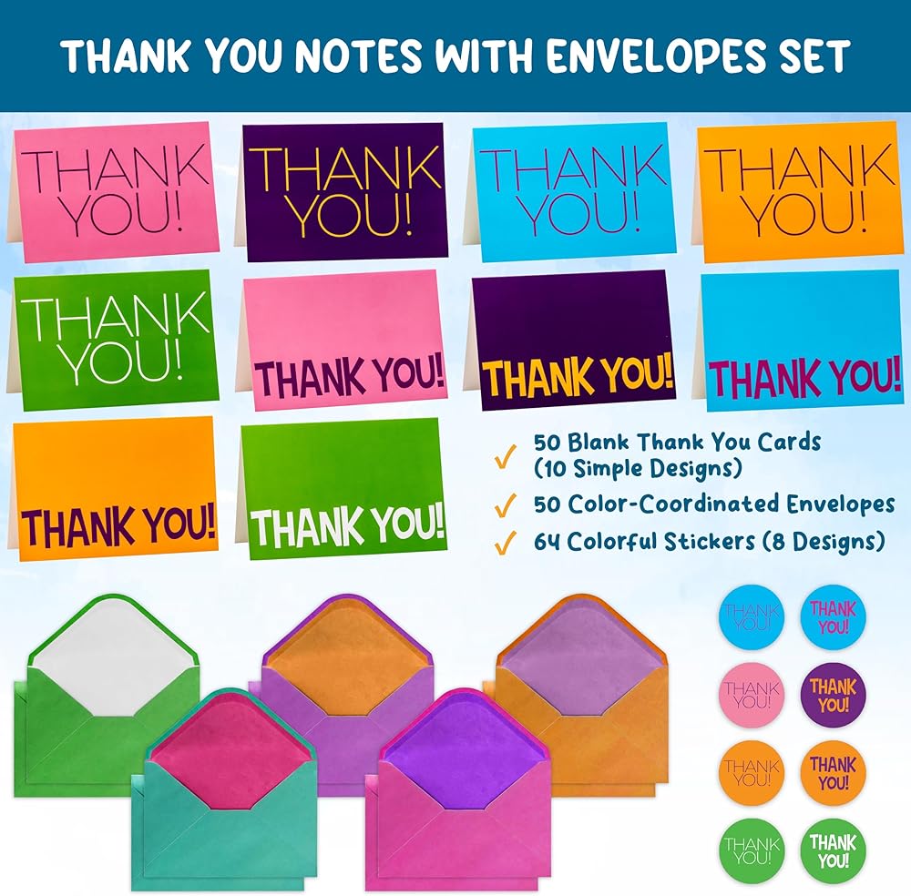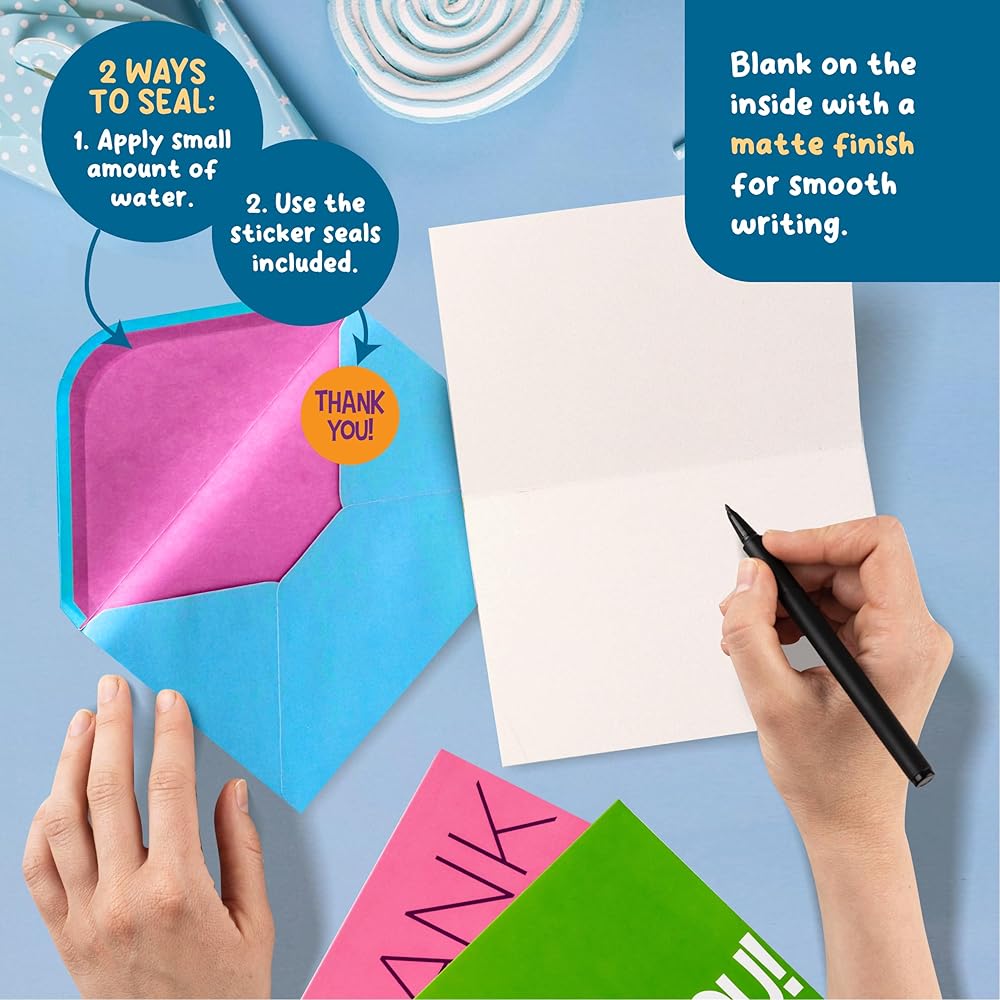 كل ما تحتاجه، جاهز للاستخدام: يتضمن 50 بطاقة فارغة سميكة مقاس 6 × 4، و50 ظرفًا، و64 ملصقًا مطابقًا حتى تكون جاهزًا على الفور للحفلات، أو المناسبات المدرسية، أو هدايا الشكر، أو أعمال التقدير العفوية.