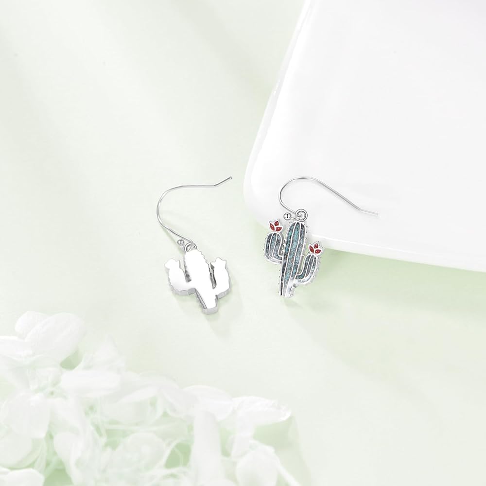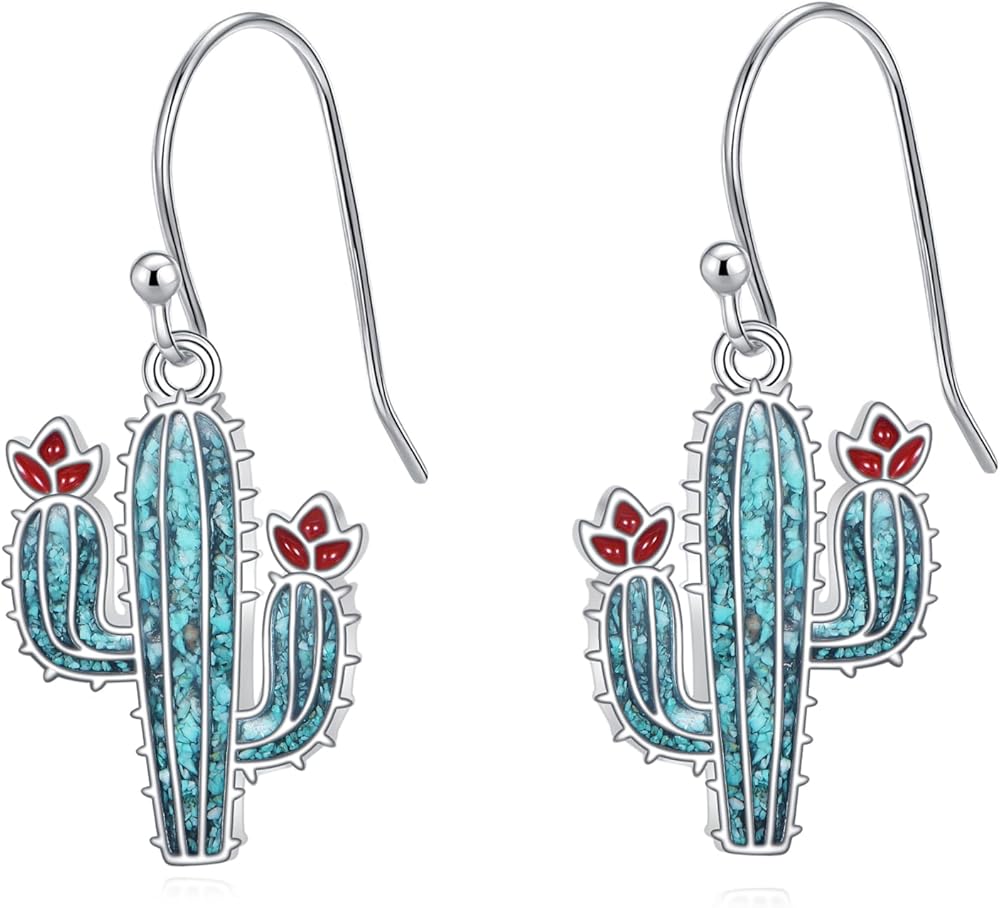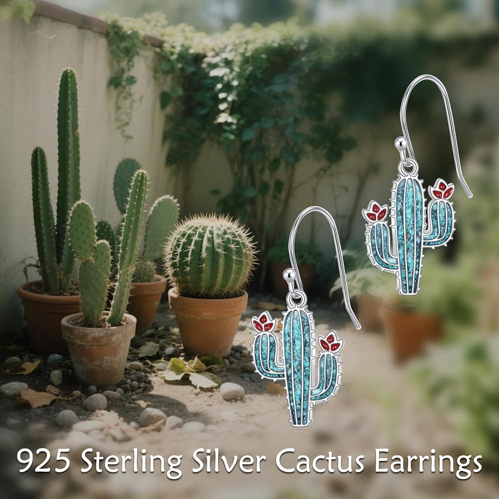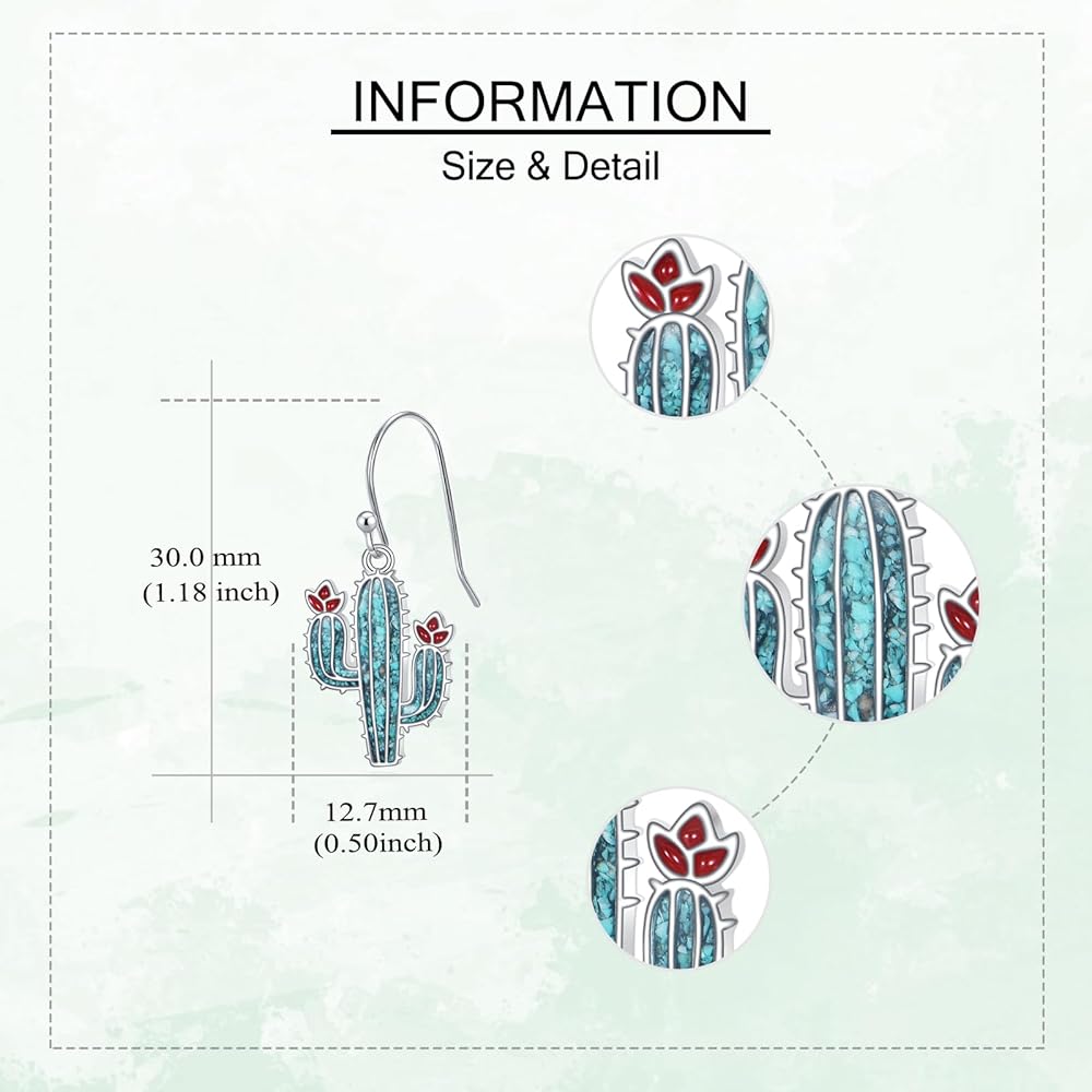 أقراط الصبار من الفضة الإسترليني عيار 925 أقراط متدلية على شكل نبات فيروزي مجوهرات الصبار هدايا للنساء