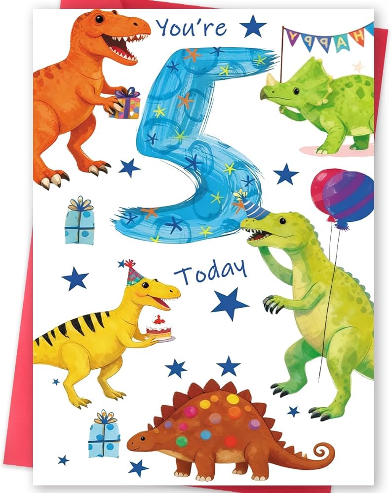 - 5th Birthday Card for Boy : Celebrate baby's 5th birthday with this cute and dinosaur greeting card
