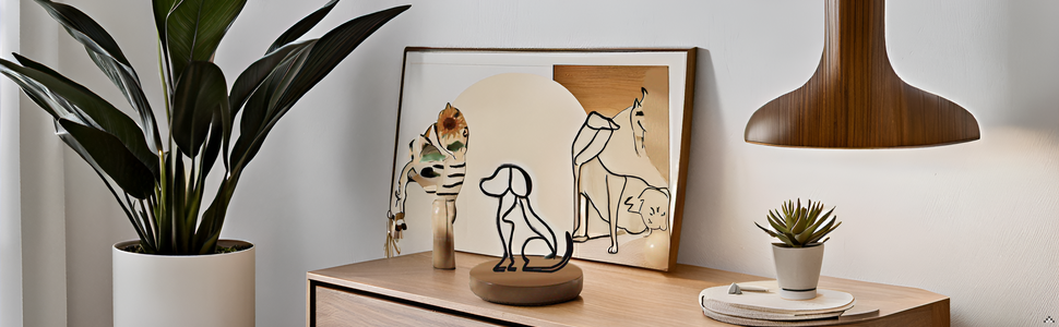 - تصميم فني: منحوتة معدنية مصنوعة بدقة تتميز بصورة ظلية للكلاب، مما يضيف لمسة من الأناقة والغرابة إلى أي مساحة.
