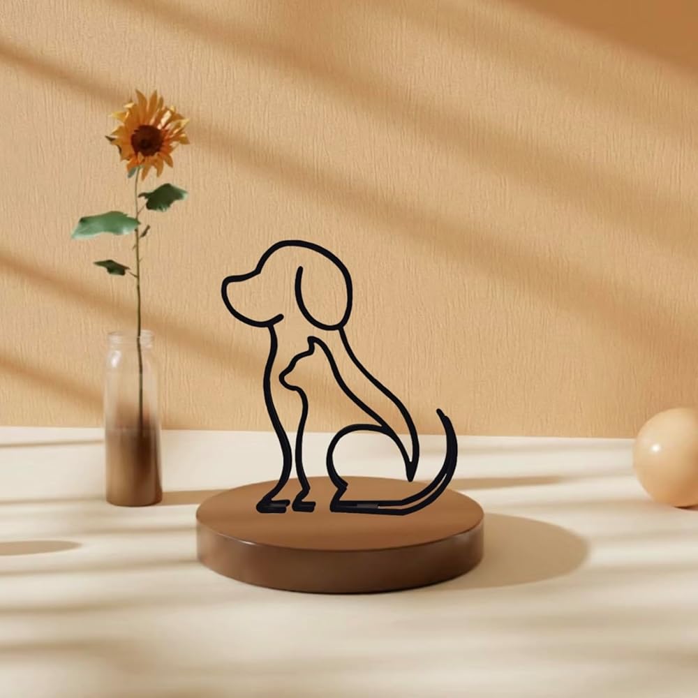 منحوتة فنية بسيطة، خط معدني تجريدي معدني شخصي، حرف فنية بسيطة، زخارف رسم خطية مبتكرة للجدار، غرفة المعيشة، ديكور مكتب المكتب المنزلي (الكلاب والقطط)