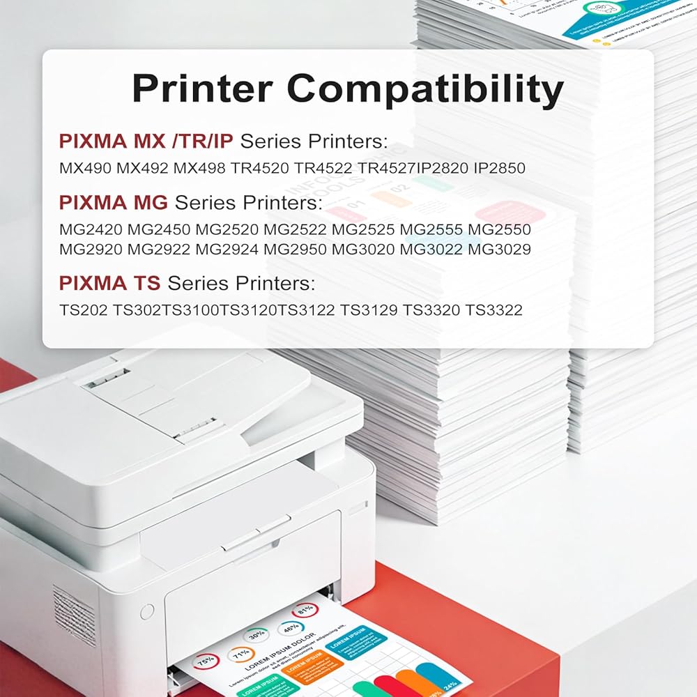 - متوافق مع طابعات سلسلة PIXMA MX /TR/ IP: MX490 MX492 MX498 TR4520 TR4522 TR4527 IP2820 IP2850