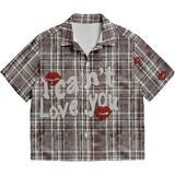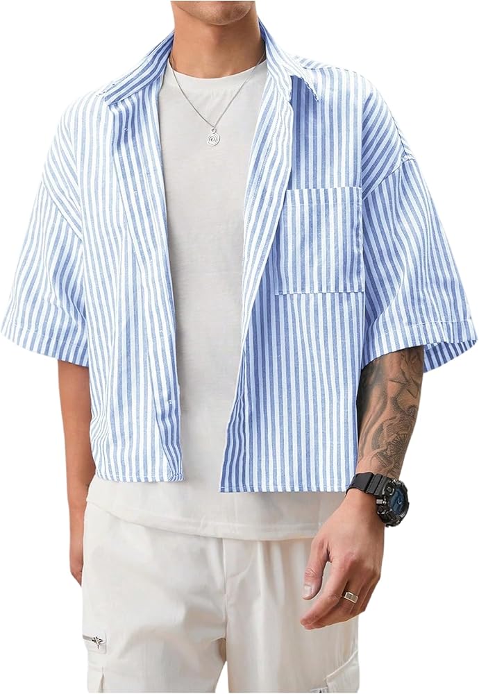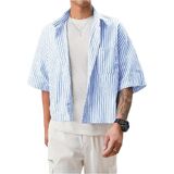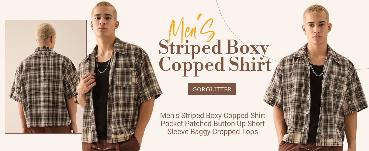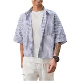 قميص GORGLITTER رجالي مخطط بوكسي مقصوص وجيب مرقع وأزرار وأكمام قصيرة وفضفاضة مقصوصة in Kuwait
