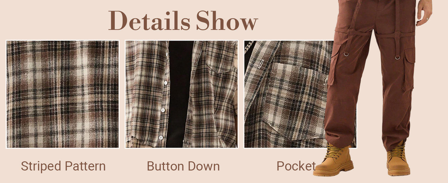 • يتميز القميص العصري للرجال بنمط مخطط كلاسيكي يضيف لمسة من الرقي، بأكمام قصيرة تجعله مثاليًا للطقس الدافئ أو للمناسبات غير الرسمية