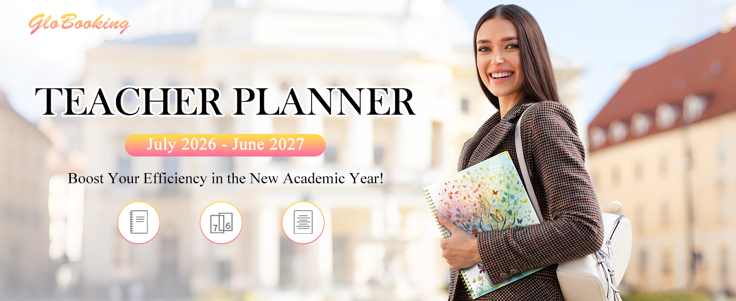 نظرة عامة على مخطط المعلم 26-27: مخطط المعلم من يوليو 2026 إلى يونيو 2027، يحتوي على صفحة معلومات | نظرة عامة | مواعيد خاصة | جدول الفعاليات المدرسية | معلومات الطالب | سجل الاتصالات | قائمة مراجعة الطالب | 12 صفحة شهرية | 53 صفحة أسبوعية | الملاحظات، التي يمكن أن تساعدك في ترتيب الدروس وتتبع التقدم في التدريس.