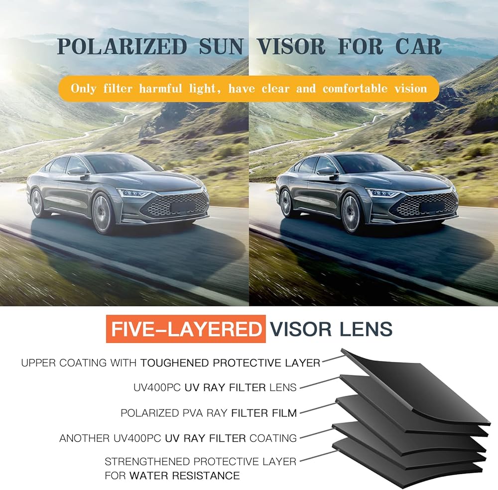 [راحة بصرية مستقطبة]: استمتع بقيادة أكثر وضوحًا وأمانًا مع تقنية العدسات المستقطبة المتقدمة. على عكس الدروع البلاستيكية القياسية، يقوم موسع الواقي هذا بتصفية الضوء المتناثر بشكل فعال ويزيل الوهج المشتت من الشمس أو الثلج المنعكس على الطريق. يوفر حماية من الأشعة فوق البنفسجية، ويعمل مثل النظارات الشمسية عالية الجودة للزجاج الأمامي الخاص بك لتقليل إجهاد العين.