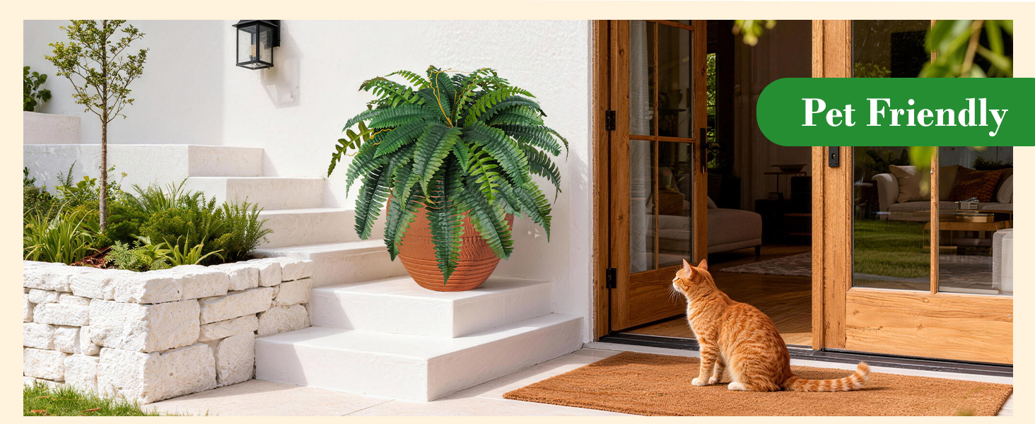 لا تحتاج إلى صيانة: على عكس النباتات الصناعية الواقعية في الهواء الطلق، لا تتطلب هذه السرخس المعلقة الصناعية سقاية أو تسميدًا منتظمًا، ولا تتطلب سوى غبار سطحي عرضي بقطعة قماش جافة لتوفر لك جمالًا وقيمة تدوم طويلاً عامًا بعد عام.
