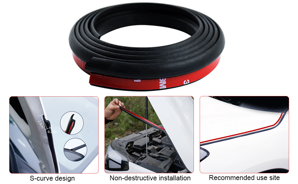 • 【زيادة إحكام الهواء】يتميز شريط إغلاق غطاء المحرك بمرونة جيدة، والتي يمكن أن تناسب فجوة سيارتك بشكل أفضل وتحسن درجة إغلاق السيارة. منع الغبار والمطر من دخول غطاء محرك السيارة والأجزاء الضارة.