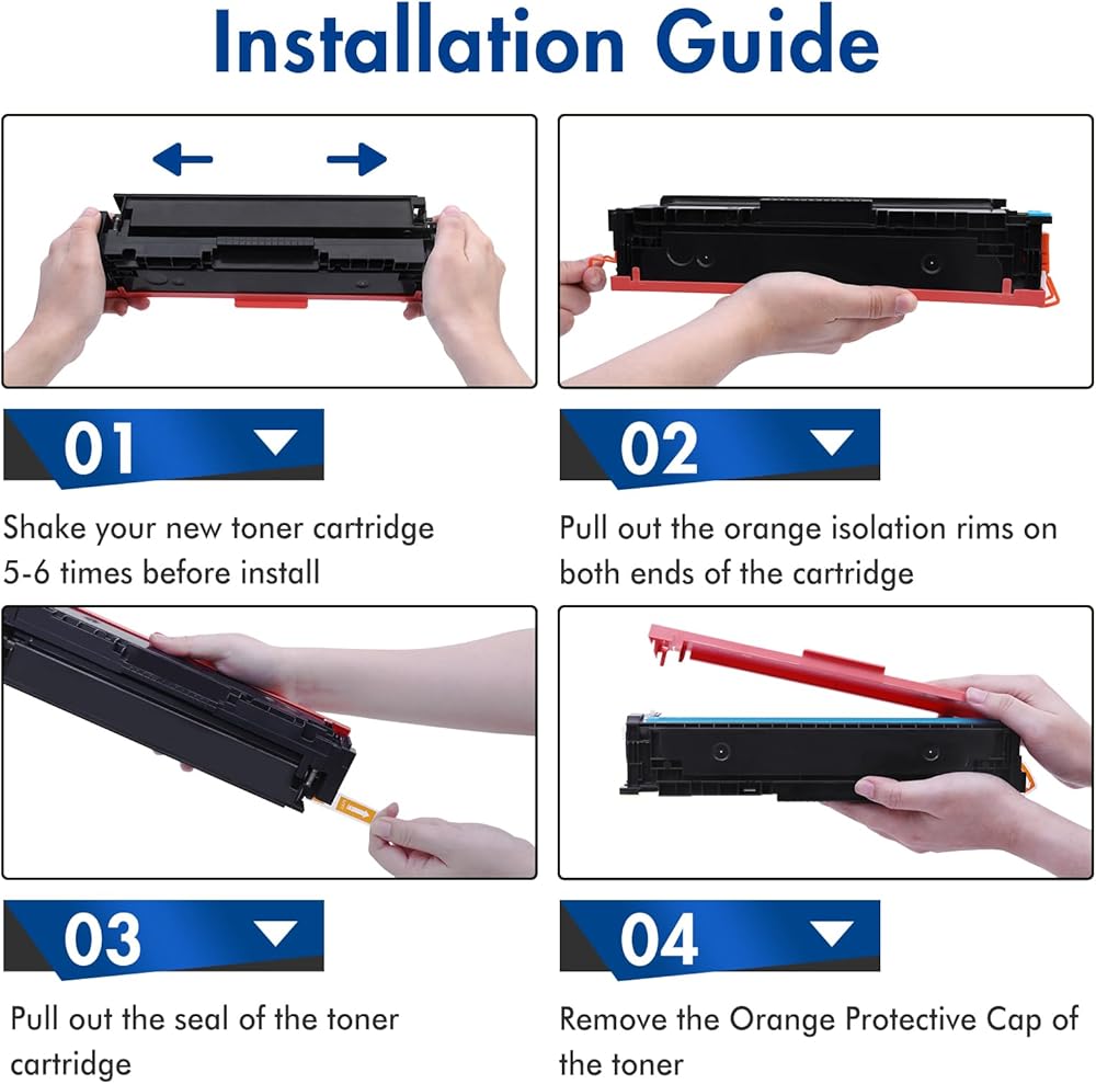 • يشتمل تونر PRINKUS على: 4 عبوات حبر 201X متوافقة مع خراطيش الحبر CF400X CF401X CF402X CF403X