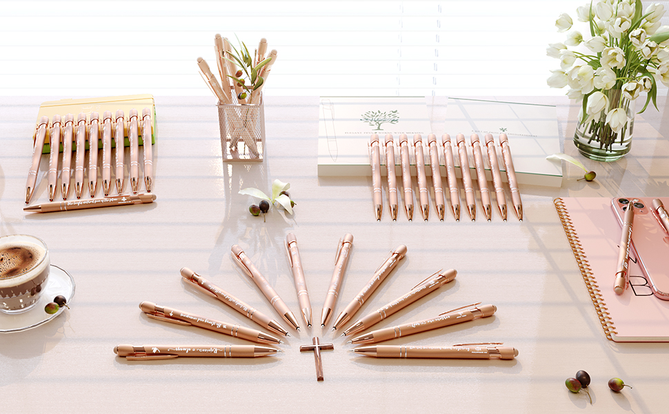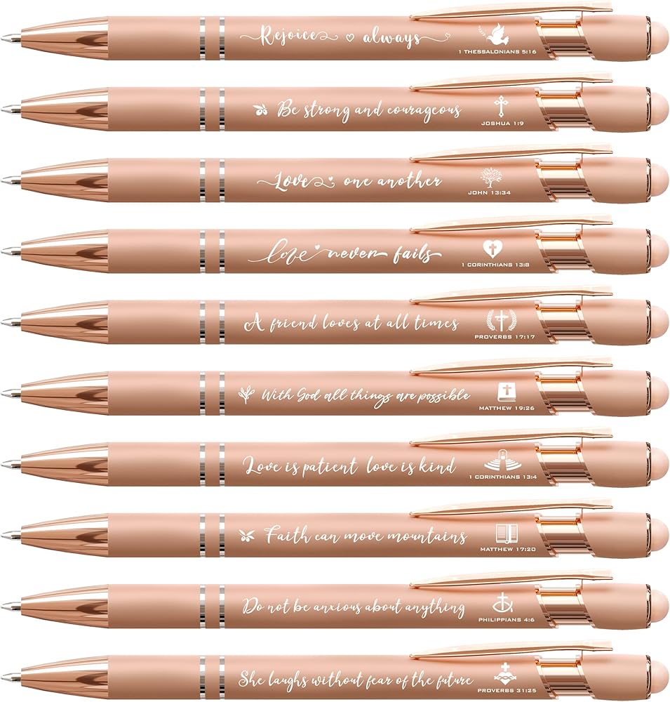 أقلام حبر جاف باللون الذهبي الوردي، كتابة سلسة، أقلام آية ملهمة من الكتاب المقدس مع طرف قلم، هدايا مسيحية للنساء الإيمان، قلم لطيف للممرضات والمدرسة والمكتب، 10 عبوات