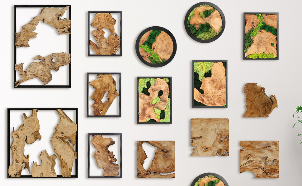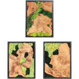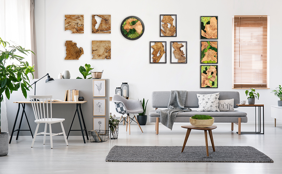 تشمل العبوة: لوحة فنية جدارية من الخشب الطحلبي مستطيلة × 3 (مواد طبيعية ومصنوعة يدويًا، كل واحدة مختلفة)