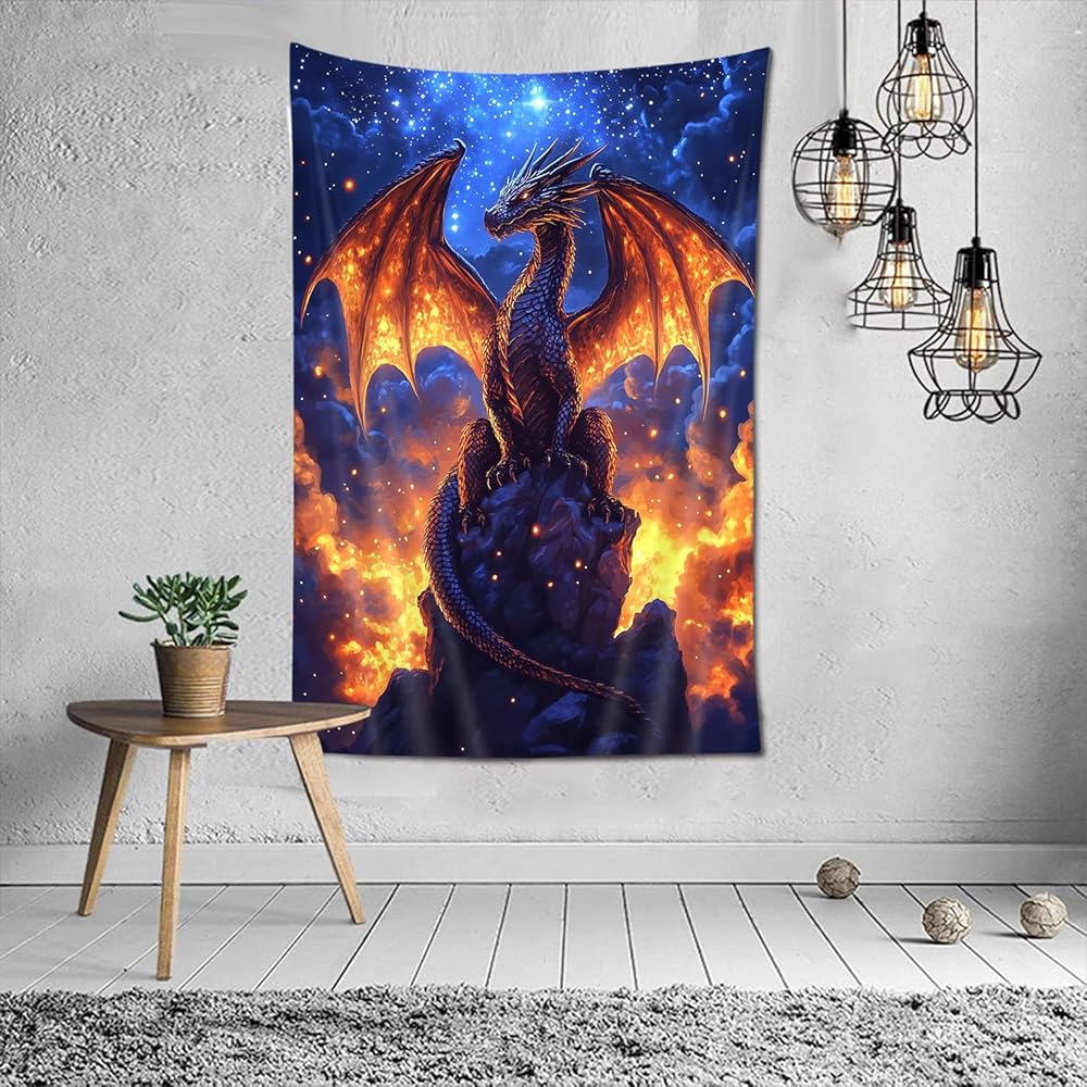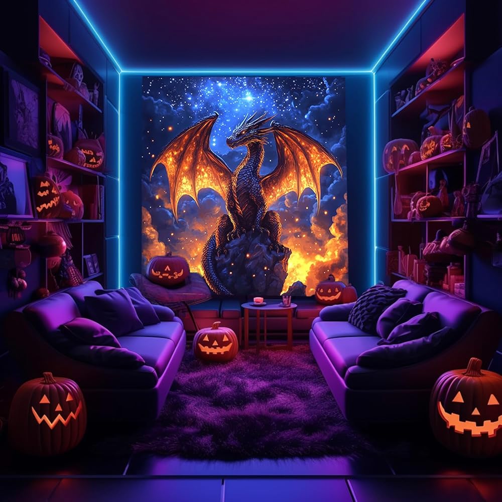 بلاكلايت التنين نسيج الخيال الأشعة فوق البنفسجية القوطية الحيوان الجدار نسيج القرون الوسطى سحر التنين نسيج، بارد الرجال الصبي الفن الجمالي مخدر المفروشات غرفة المعيشة النوم غرفة نوم ديكور المنزل، 30x40in
