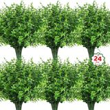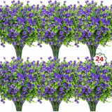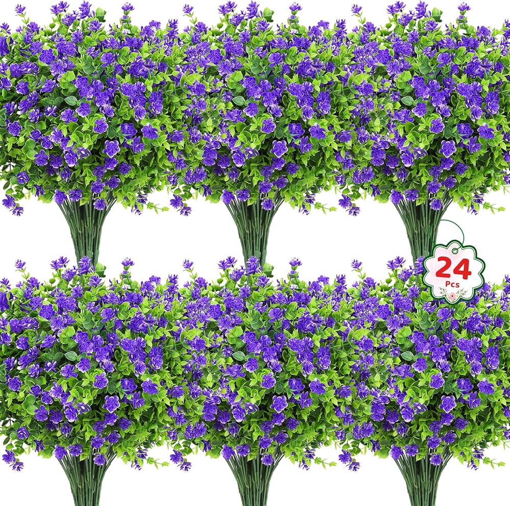 Roberly 24 Bundles Artificial Flowers for Outdoors, UV Resistant Eucalyptus Fake Flowers Shrubs Greenery Plastic Plants for Garden Porch Window Box Farmhouse Indoor Home Decor, Mixed