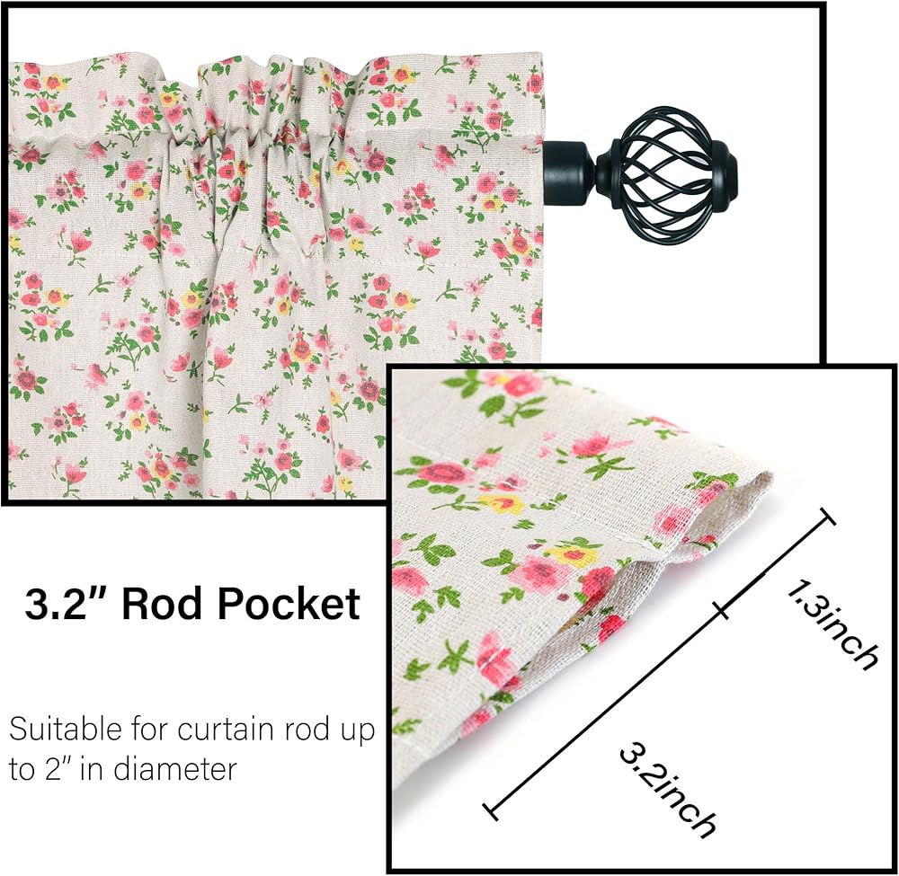 - Valance measures W 28 inch x L 36 inch (length includes height of pole pocket and upper header)