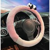 Dotesy Cute 3D Panda Auto غطاء عجلة القيادة، غطاء حماية عجلة قيادة السيارة بنمط الرسوم المتحركة الأنيق من القطيفة الناعمة المريحة الدافئة العالمية لـ 36.5-38 سم (أسود أبيض) in Kuwait