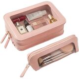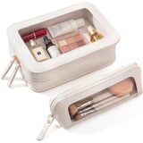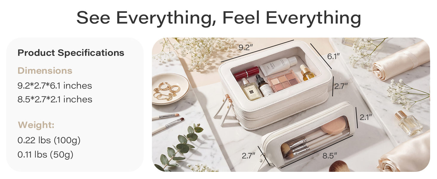 ✈️حجم صغير الحجم وقابل للحمل للغاية: قياس حقيبة المكياج الشفافة مقاس 9.25 بوصة × 6.1 بوصة × 2.75 بوصة (23.5 سم × 15.5 سم × 7 سم)، حقيبة فرش المكياج النحيفة مقاس 9.05 بوصة × 2.36 بوصة × 2.75 بوصة (23 سم × 6 سم × 7 سم)، حقيبة المكياج الشفافة الخاصة بنا أنيقة وأنيقة، هذا المكياج تم تصميم منظم السفر بشكل صندوقي بسيط ومصنوع من جلد البولي يوريثان الجميل ومزود بأجزاء صلبة مصقولة، حقيبة المكياج العصرية سهلة الحمل في حقيبة يدك أو حقيبة يدك.