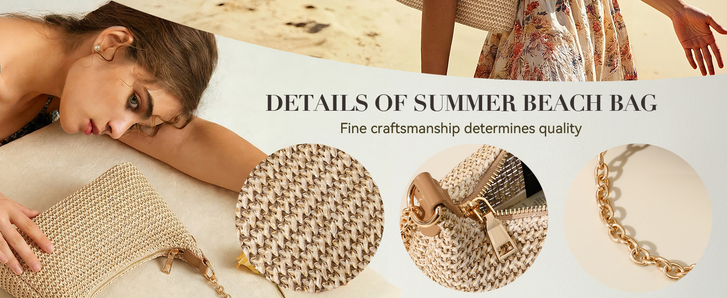 خيارات حمل متعددة الاستخدامات: تتميز المحفظة الصيفية بحزام سلسلة معدنية قوي وتتضمن حزام كتف جلدي إضافي قابل للفصل، حتى تتمكن من تغيير أسلوبك سواء كنت متجهًا إلى الشاطئ أو خارج المدينة.