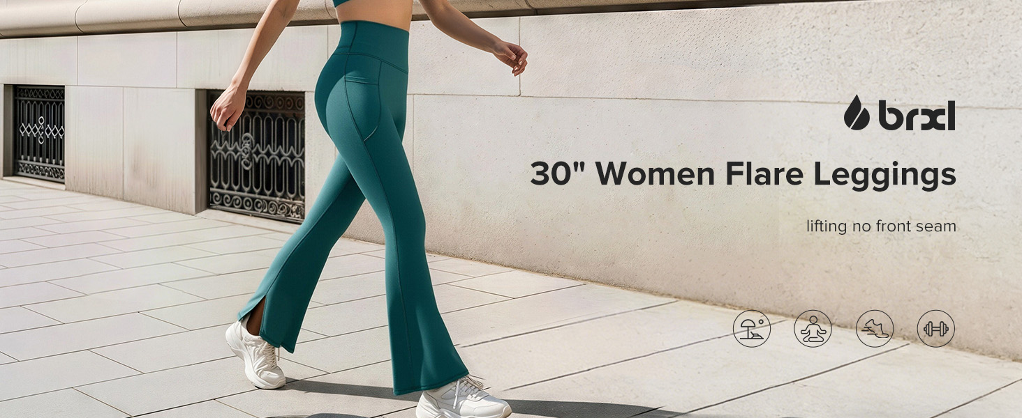 BRXL 30 "طماق مضيئة للنساء بدون درزات أمامية عالية الخصر للتحكم في البطن جيوب صغيرة واسعة للتمارين الرياضية in Kuwait
