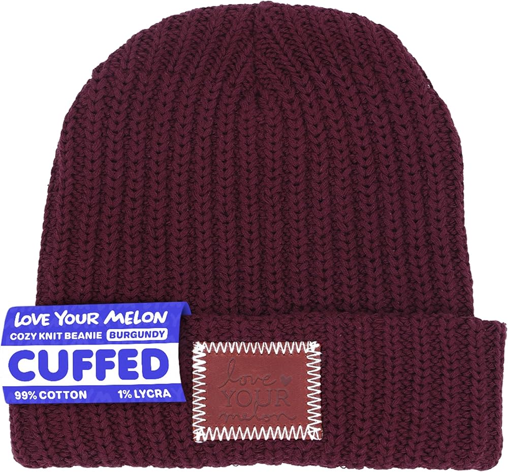 • طراز بورغوندي كلاسيكي بأساور: قبعة Love Your Melon Classics Knit ذات أساور تتميز بتفاصيل متعرجة مميزة مع رقعة جلدية من جلد القيقب الأحمر بدون رقائق ذهبية، مما يخلق مظهرًا كلاسيكيًا متعدد الاستخدامات يكمل المظهر الكاجوال والخارجي.
