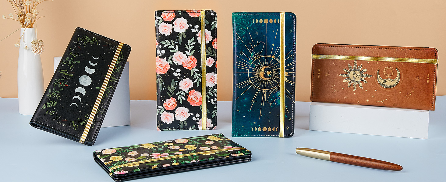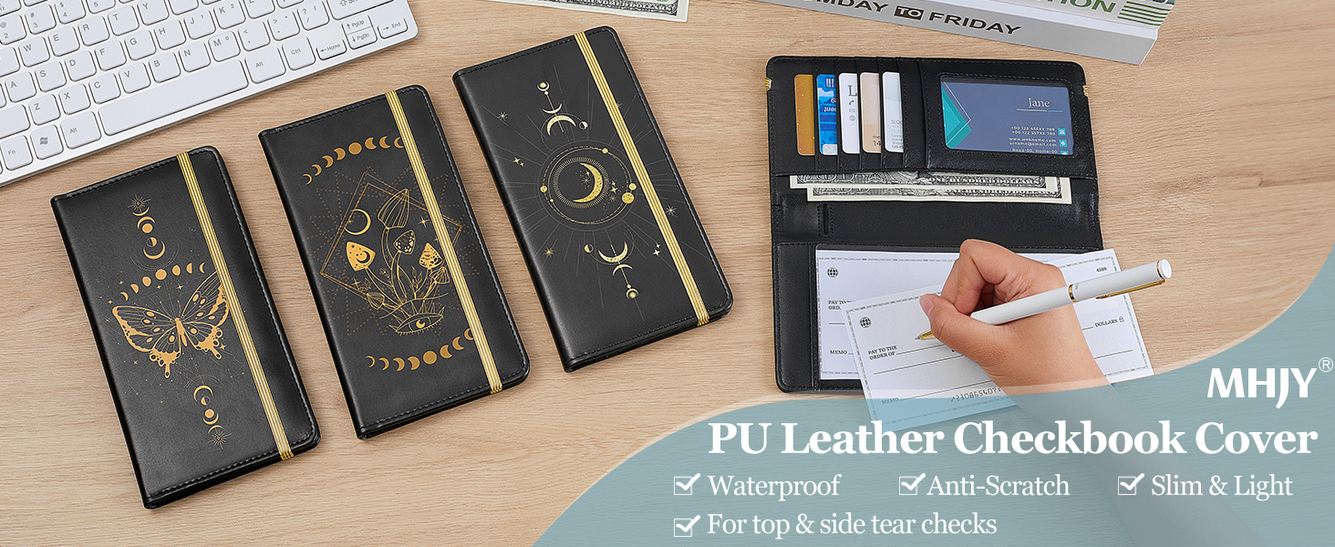 • ✨【خامة عالية الجودة】محفظة دفتر الشيكات الجميلة هذه مصنوعة من مادة البولي يوريثان الناعمة والمقاومة للماء، ومصممة بنمط جميل، ومعززة بدقة بحواف مخيطة، مما يجعل غطاء دفتر الشيكات هذا متينًا وجميلاً.