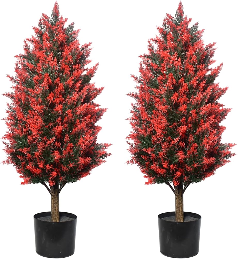 PakaLife 2 Set Artificial Topiary Tree for Fall Decor,Realistic Faux Boxwood Trees Fall Decorations Indoor&Outdoor,Thanksgiving Decorations for Garden,Forch Decor,Fall Decorations for Home
