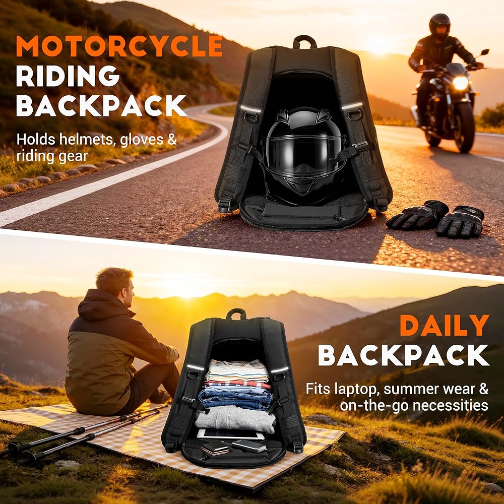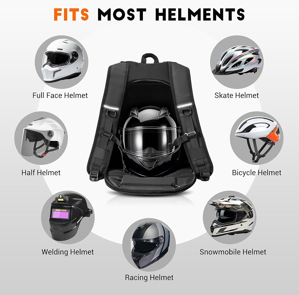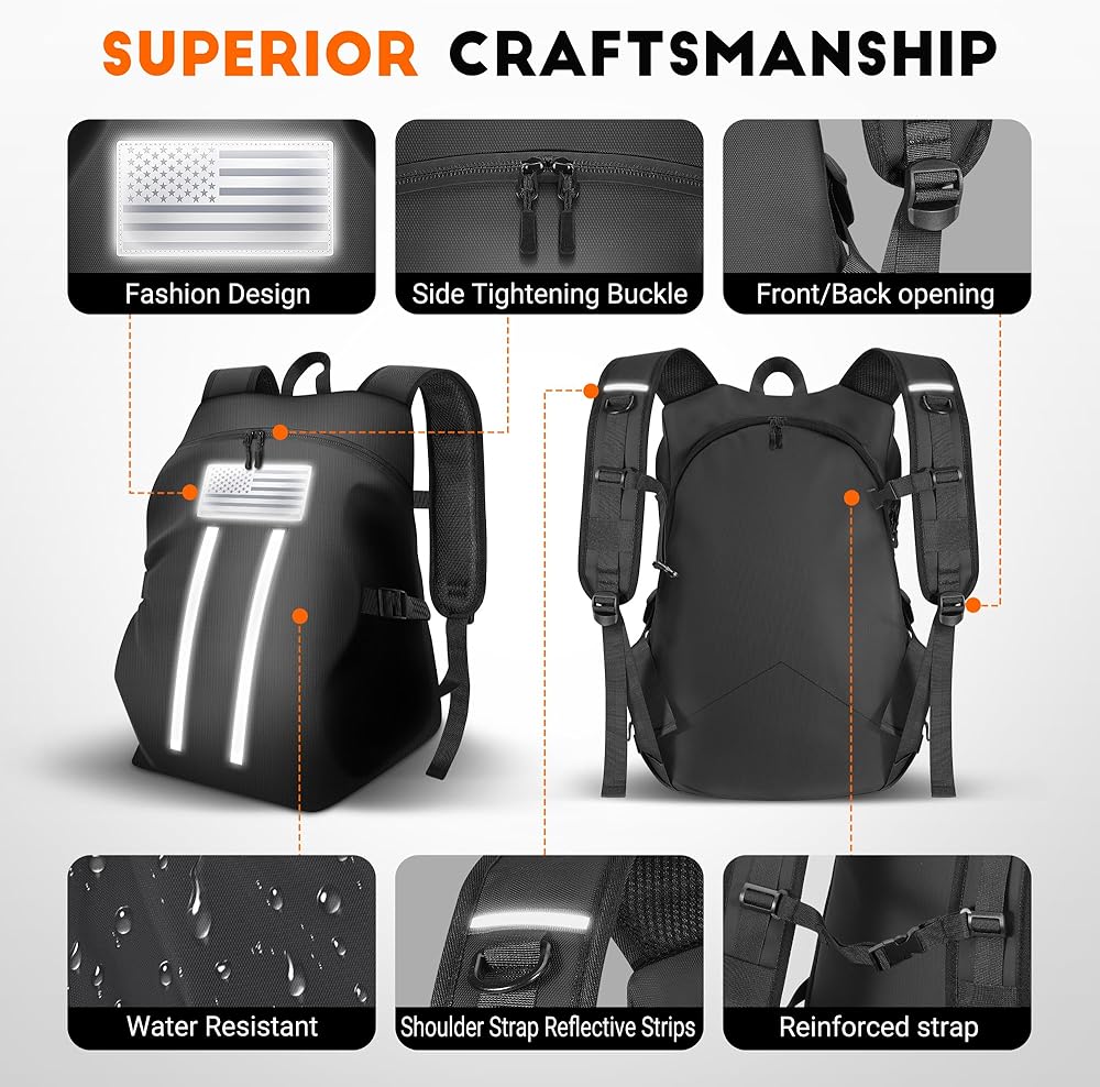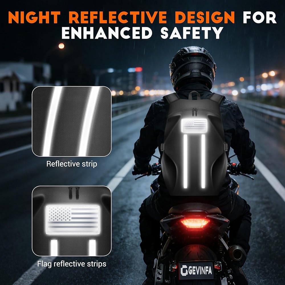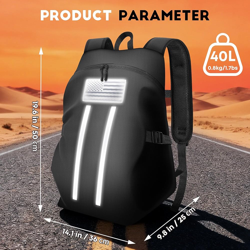 حقيبة ظهر للدراجات النارية، حقيبة ظهر خوذة مقاومة للماء مع أشرطة عاكسة وعلم عاكس، حقيبة كبيرة سعة 40 لتر مع جيب للكمبيوتر المحمول، مثالية للسفر والتنقل اليومي ورحلات المكتب وركوب الدراجات في الهواء الطلق
