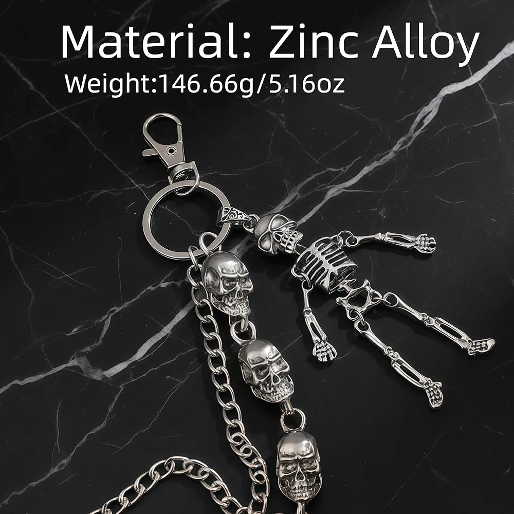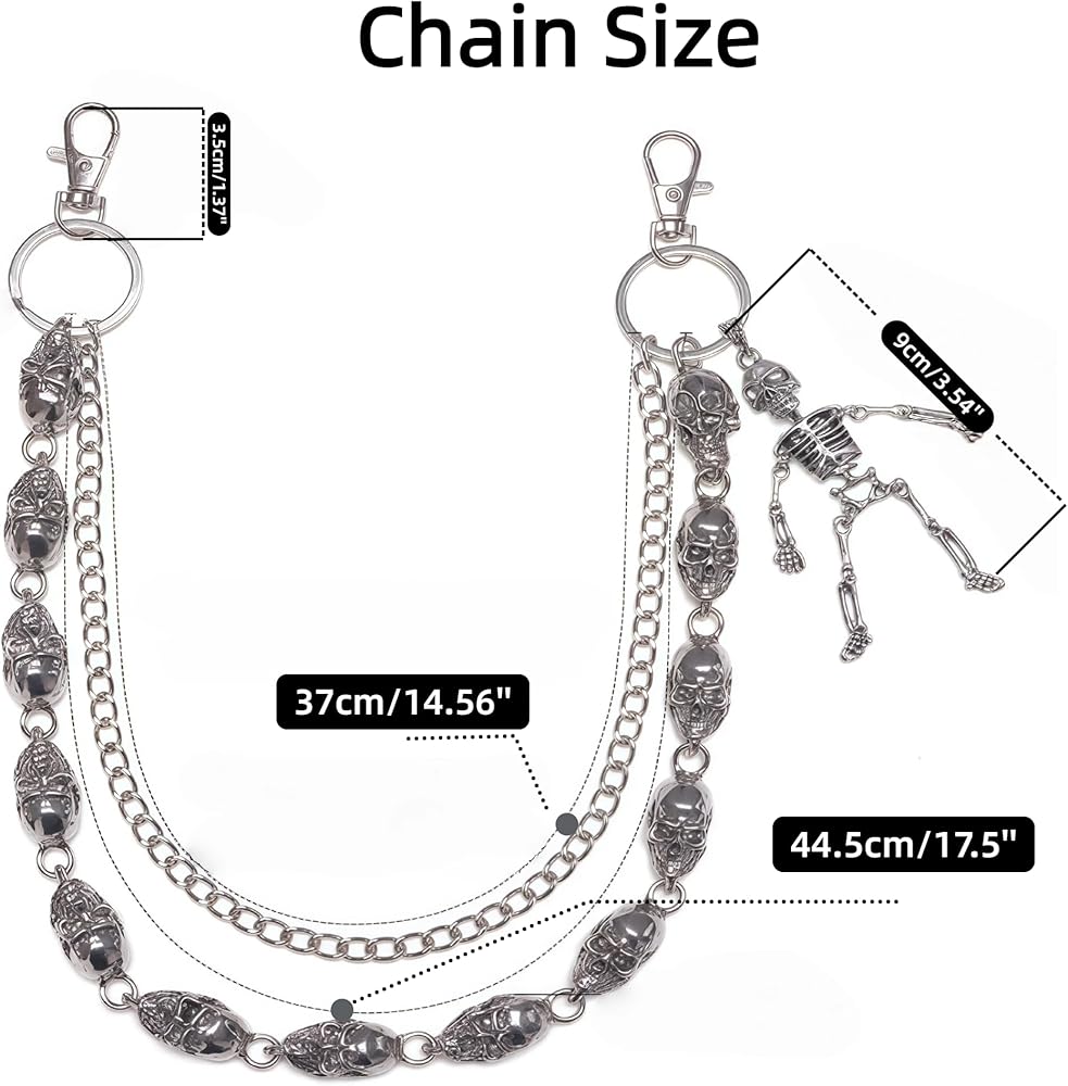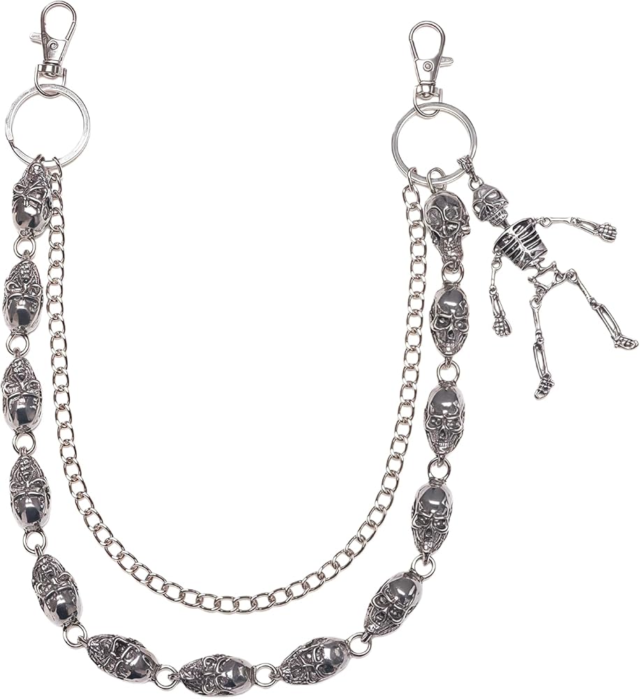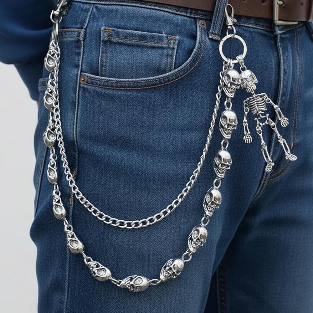 سلسلة محفظة على شكل جمجمة للرجال والنساء، سلسلة سراويل مزدوجة الطبقات الشريرة/القوطية، سلسلة مفاتيح معدنية شديدة التحمل، إكسسوار على طراز الشارع/راكب الدراجة النارية