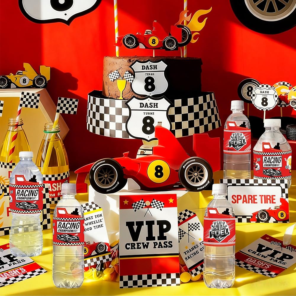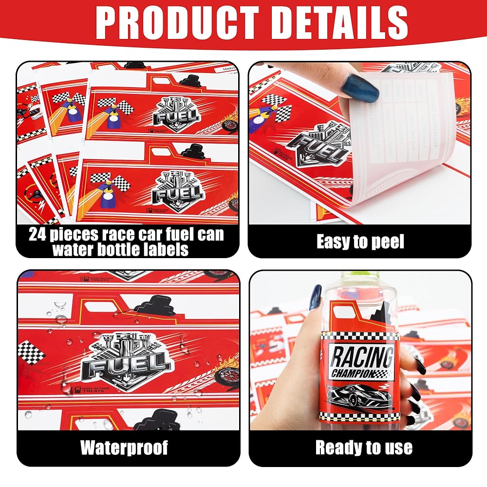 تصميم بطابع السباق: تتميز ملصقات زجاجات المياه هذه بشكل صندوق الوقود الكلاسيكي وعناصر سيارة السباق، مما يجعل الناس يشعرون بالانتعاش واللطيف، ويتركون ذكريات لا تنسى لعائلتك وضيوفك.