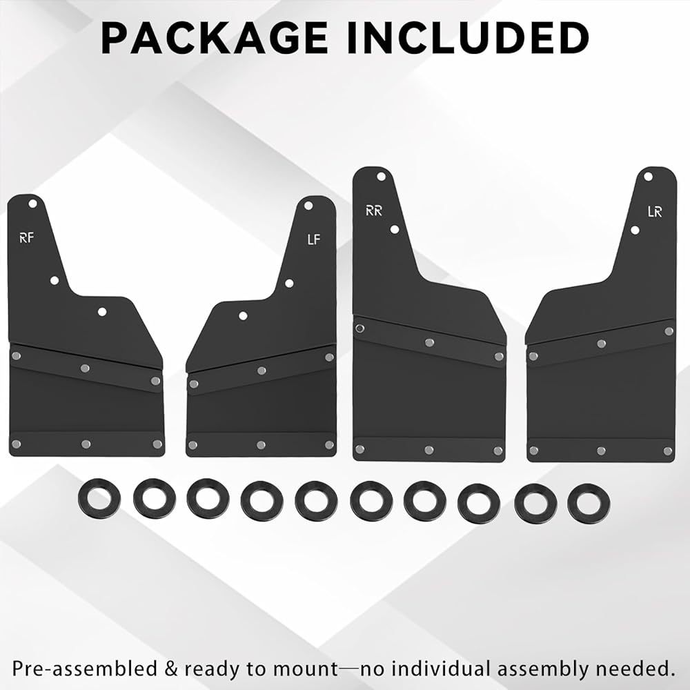 【سهلة التركيب】تأتي أغطية الطين هذه مجمعة بالكامل وجاهزة للتركيب، ولا تحتاج إلى تجميع الأجزاء الفردية معًا أولاً. ما عليك سوى وضعها داخل أقواس العجلات، ومواءمتها مع فتحات المصنع المحفورة مسبقًا في سيارتك، ثم تثبيتها في مكانها - دون الحاجة إلى الحفر.