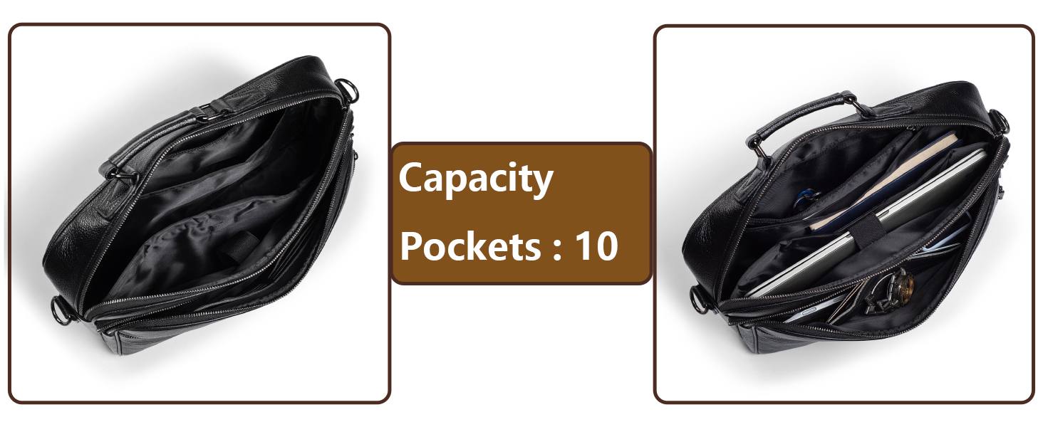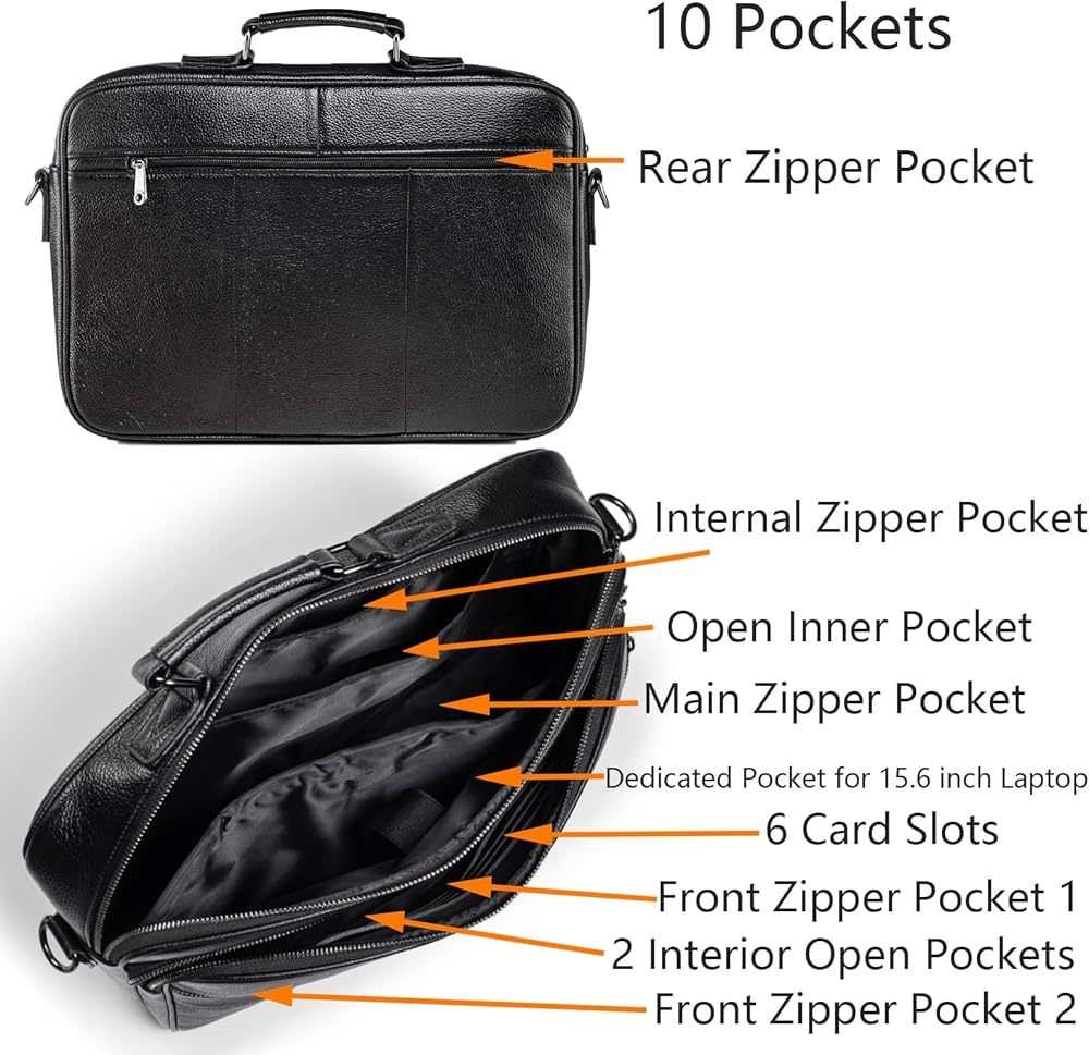 • جيوب متعددة وسعة كبيرة: هذه الحقيبة للرجال بإجمالي 10 جيوب. مقصورات رئيسية كبيرة بسحاب مع جيب داخلي بسحاب، وحقيبة مفتوحة وقسم للكمبيوتر المحمول مع شريط فيلكرو للتثبيت. 2 جيب أمامي بسحاب. 1 جيب خلفي بسحاب وما إلى ذلك، إجمالي 10 جيوب. توفر المقصورات الواسعة مساحة منفصلة لجهاز الكمبيوتر المحمول والمستندات والأجهزة اللوحية والهواتف وأجهزة iPad والأقلام والشاحن والكاميرا والمجلات والكتب وبطاقات العمل وجميع أغراضك.