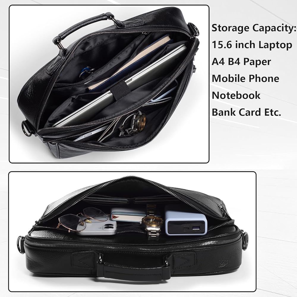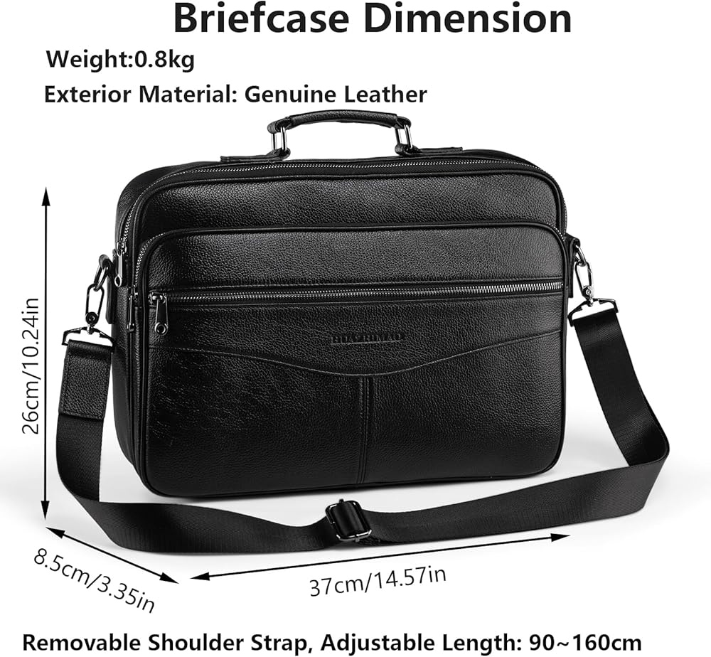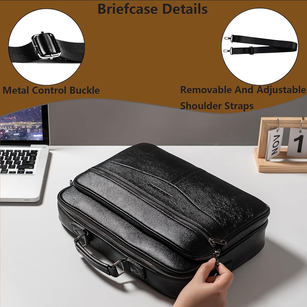 • الأبعاد الكبيرة: مقاس حقيبة الحقيبة الجلدية هذه: (طول) 14.57 × (عرض) 3.54 × (ارتفاع) 10.24 بوصة. وزن خفيف: 1.76 كجم. طول المقبض: 3.94 بوصة. تم تصميم حقيبة الأعمال هذه خصيصًا لأجهزة الكمبيوتر المحمولة مقاس 15.6 بوصة. يعد أيضًا خيارًا رائعًا عندما تواجه موقفًا تحتاج فيه إلى نقل عملك إلى المنزل.